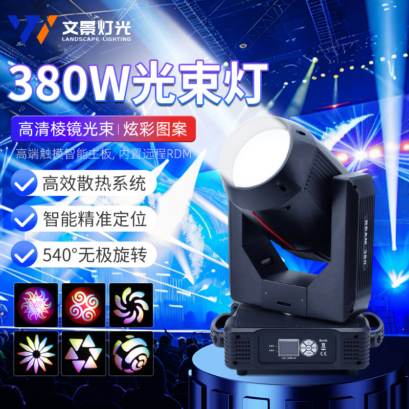 무대 쉐이크 헤드 380w 빔 램프 웨딩 성능 조명 장비 전체 세트 느린 쉐이크 바 스포트라이트 회전 패턴