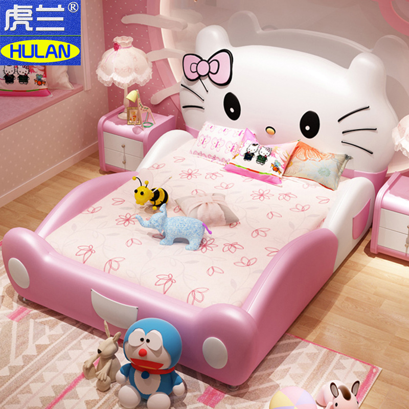 어린이 침대 만화 소녀의 침대 난간이있는 딸의 침대 학생용 어린이 침대 여아 침대 부드러운 가방 가죽 침대스토어 가기