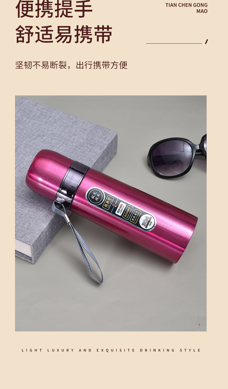 대용량 스포츠 주전자 패션 304 스테인레스 스틸 총알 머그 야외 리프팅 로프 단열 물 컵 사용자 정의