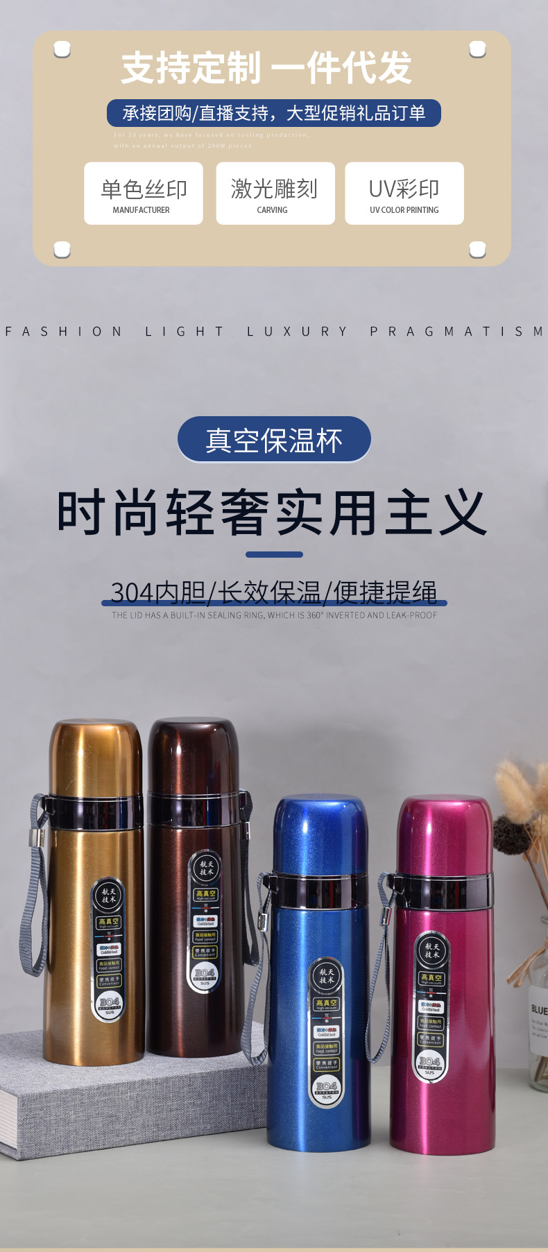 대용량 스포츠 주전자 패션 304 스테인레스 스틸 총알 머그 야외 리프팅 로프 단열 물 컵 사용자 정의스토어 가기
