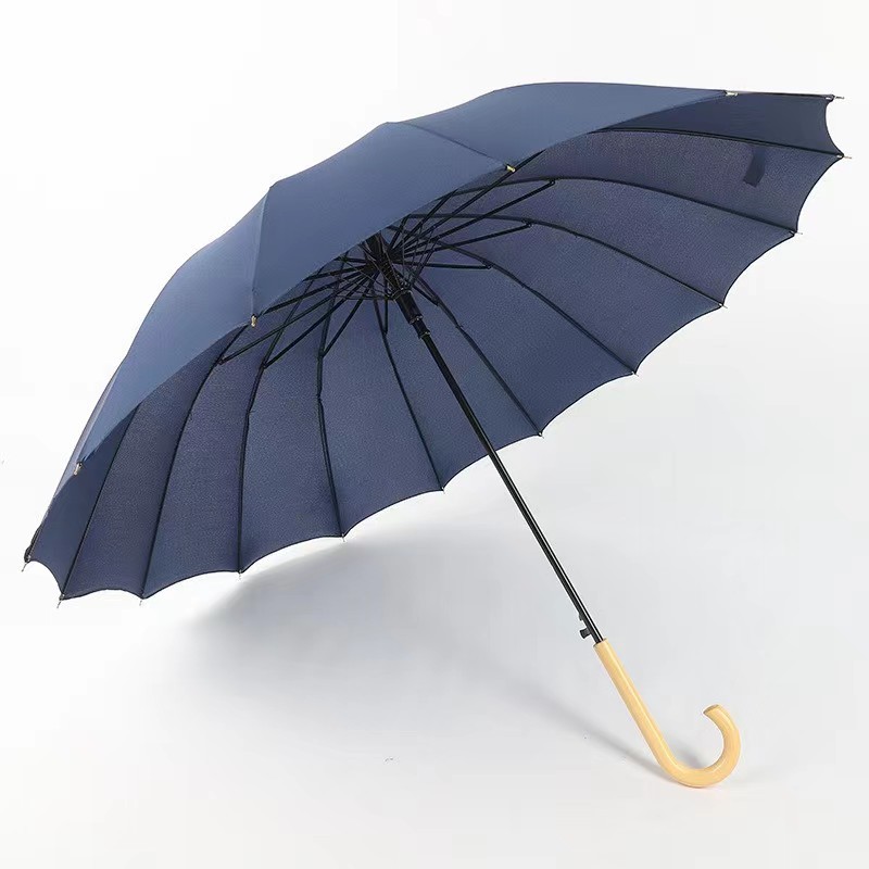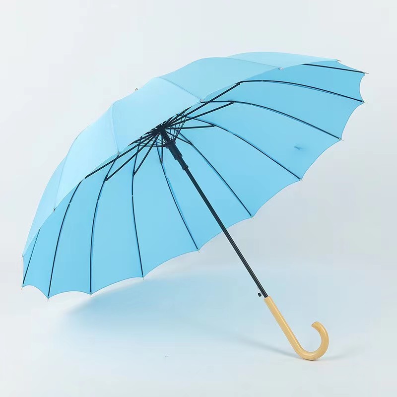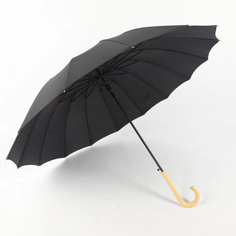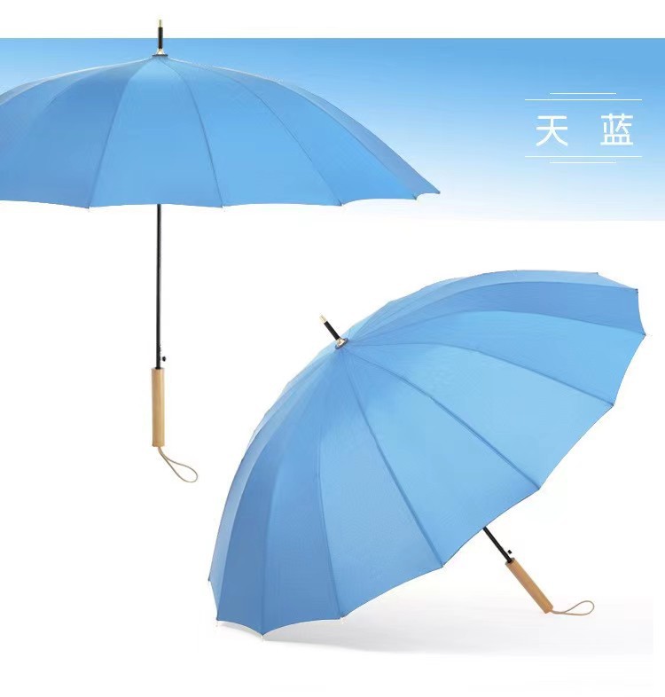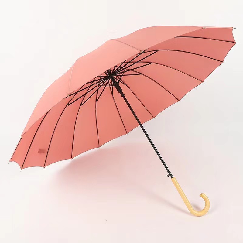 센우 16본 무지 직선 손잡이 우산 원목 손잡이 자동 우산 대형 방풍 로고 인쇄 차양 간단한 디자인