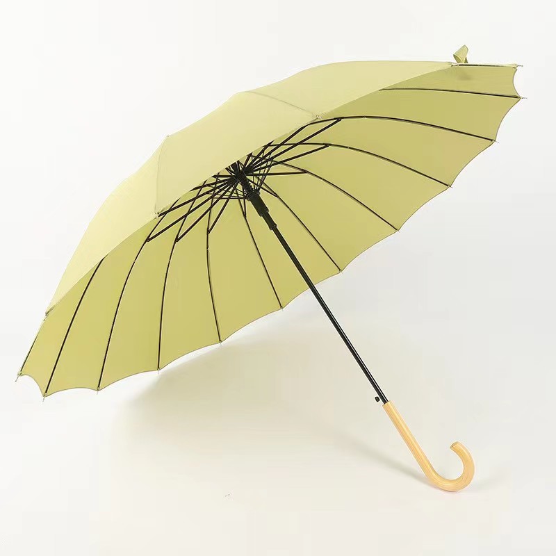 센우 16본 무지 직선 손잡이 우산 원목 손잡이 자동 우산 대형 방풍 로고 인쇄 차양 간단한 디자인스토어 가기