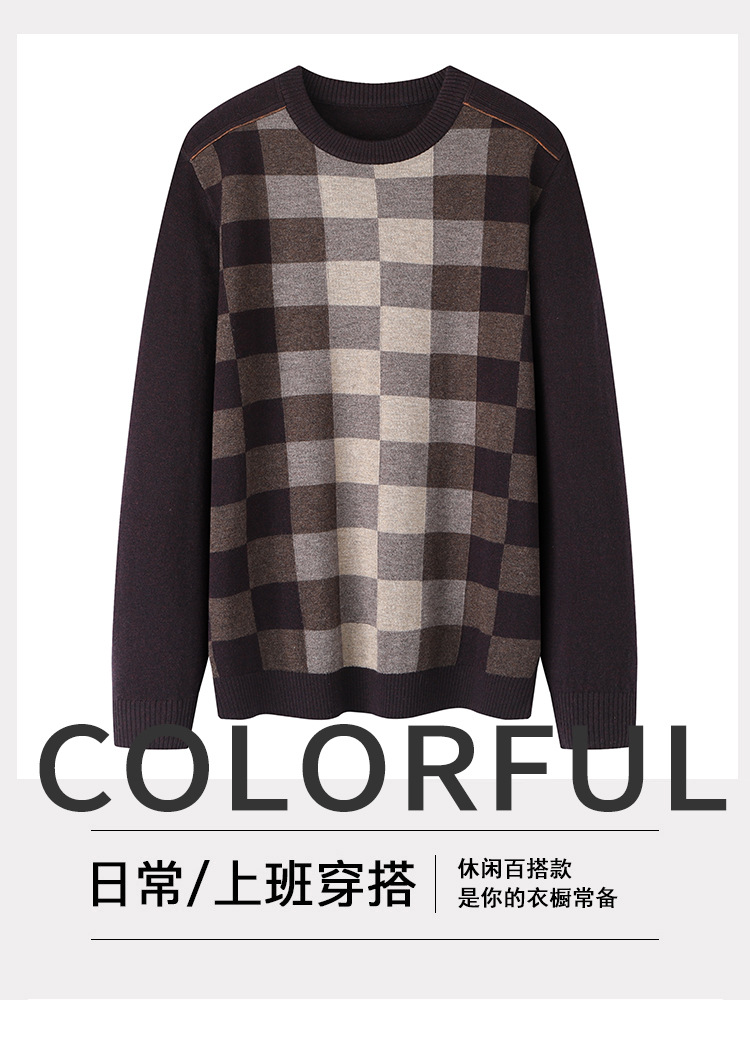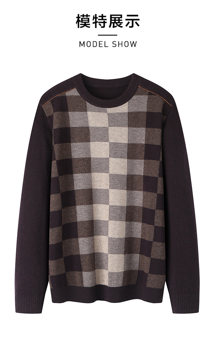 브랜드 컷 라벨 봄과 가을 남성용 크루 넥 부드럽고 따뜻한 캐주얼 착용하기 쉬운 아빠 격자 무늬 스웨터 Z4E096스토어 가기