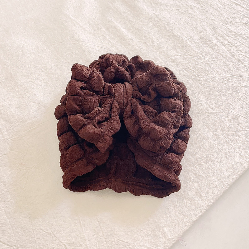 2023春夏款儿童泡泡大蝴蝶结套头帽 跨境爆米花婴儿纯色印度帽