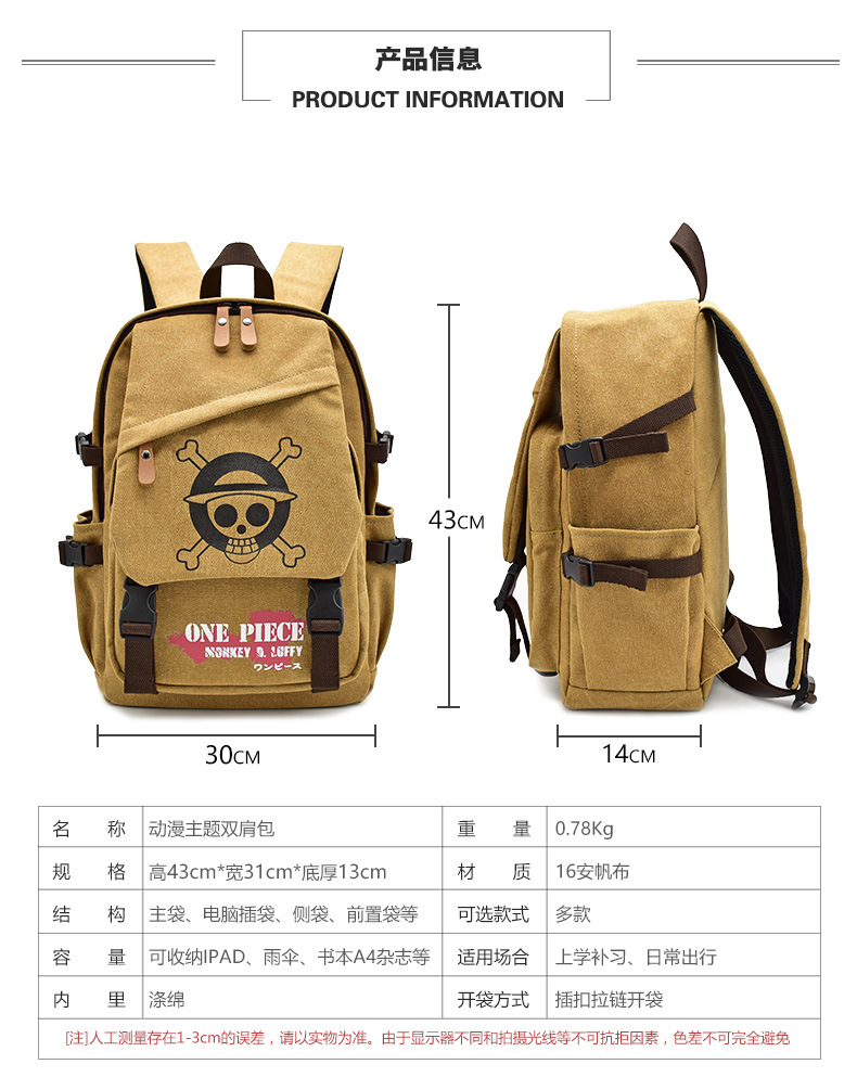 애니메이션 백팩 스파이 패밀리 백팩 전기톱맨 원피스 귀멸의 칼날 학생 가방 캠퍼스 스타일
