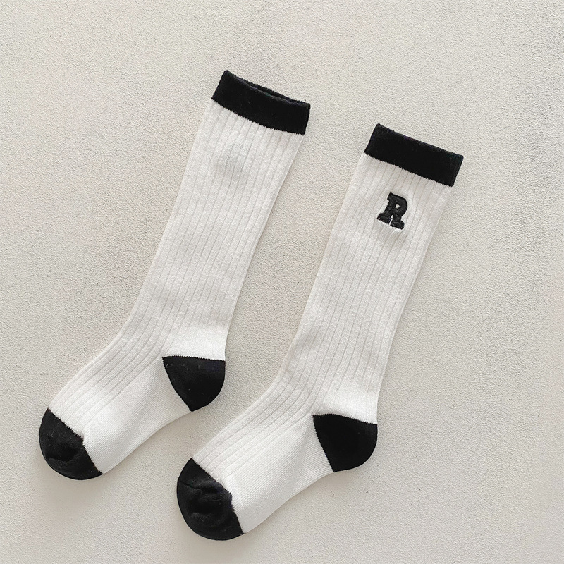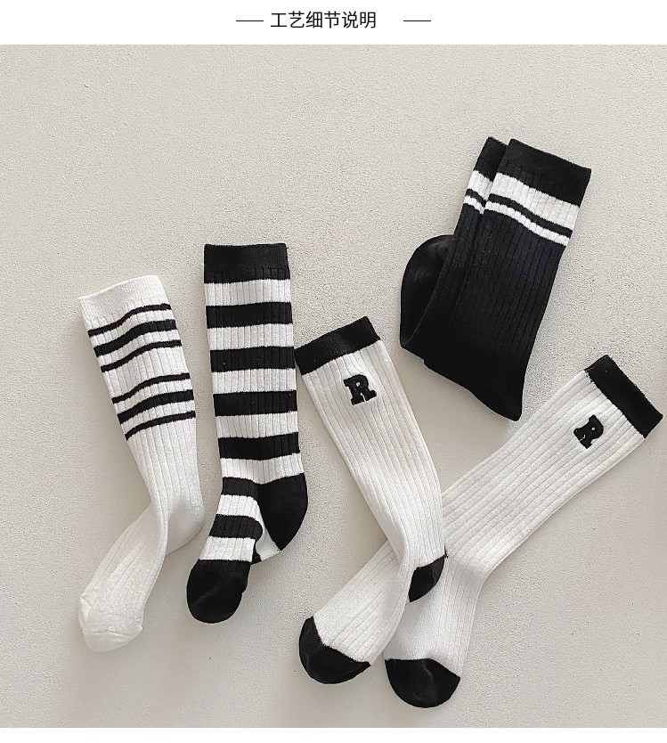 가을과 겨울 새로운 어린이 양말 한국어 버전 4 바 스트라이프 AB 어린이 스타킹 소년 소녀 학생 송아지 양말 조수 양말