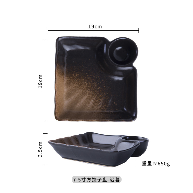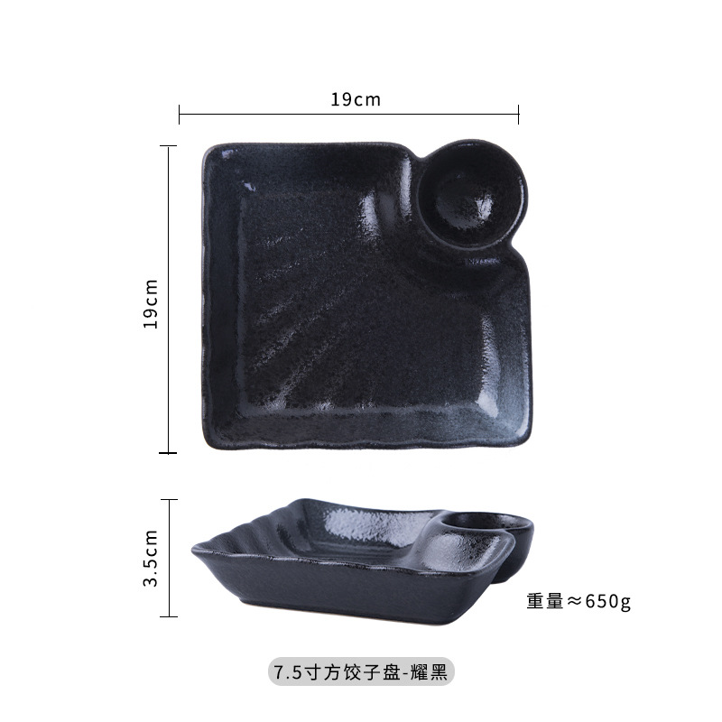 • 7.5 인치 사각 만두 접시-야오 블랙