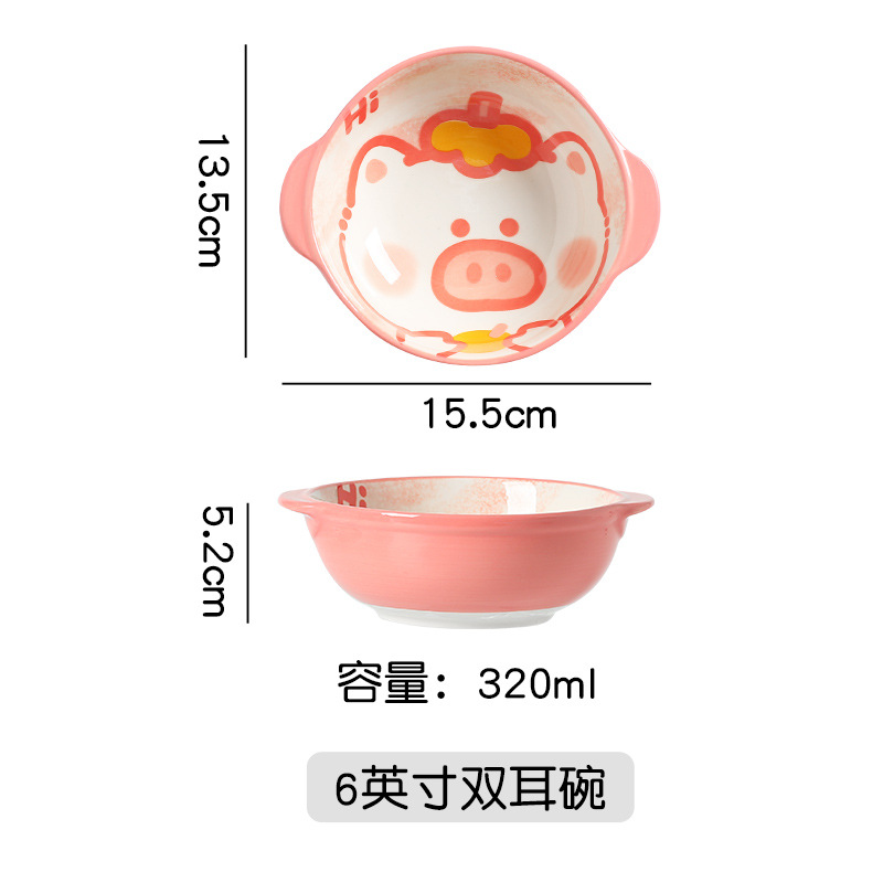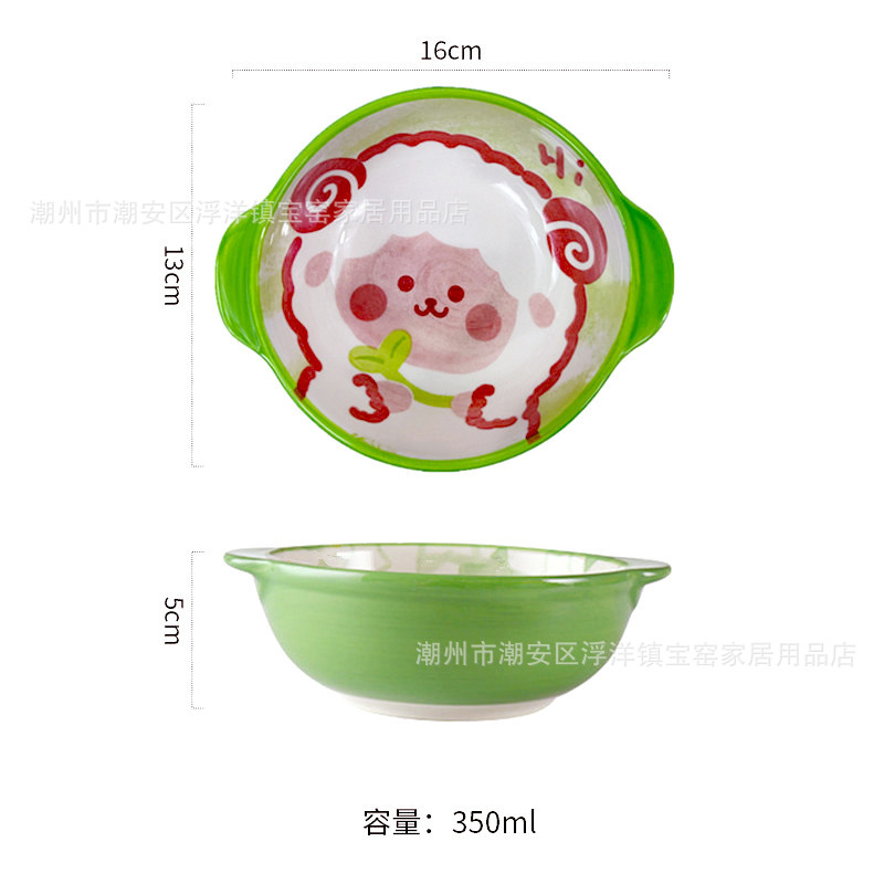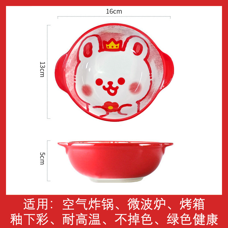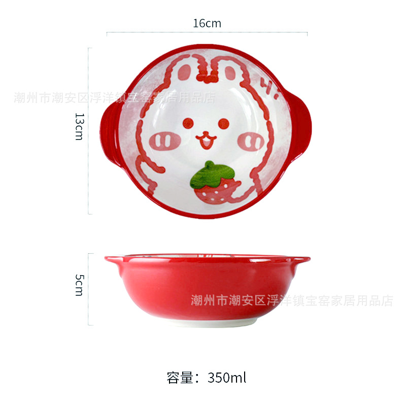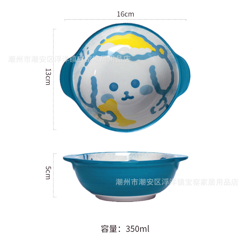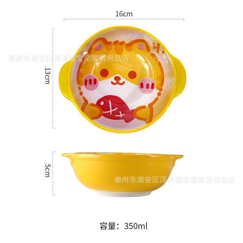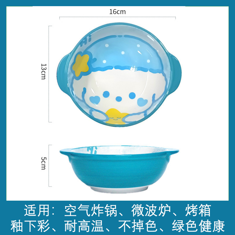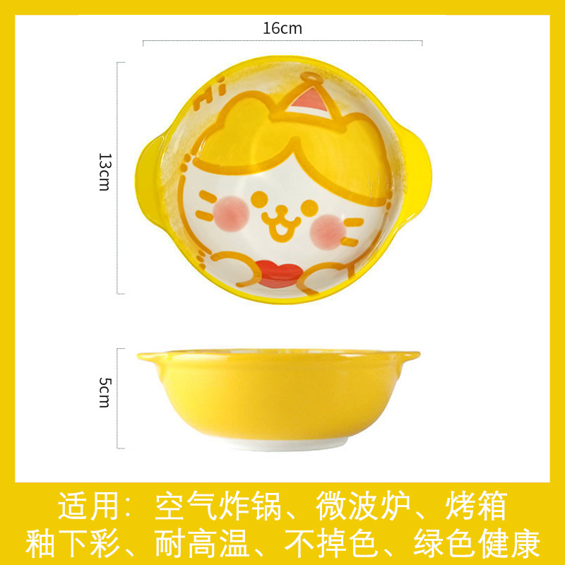 어린이 그릇 세라믹 이중 귀 그릇 귀여운 만화 작은 그릇 초등학생 밥그릇 찐 계란 그릇 끓는 방지 수프 그릇 단일 팩스토어 가기