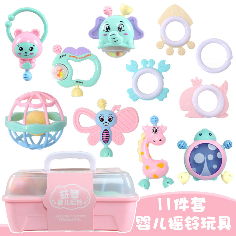 아기 손 딸랑이 세트 선물 상자 퍼즐 그립 젖니가 남 장난감 0-1 세 신생아 딸랑이 도매스토어 가기