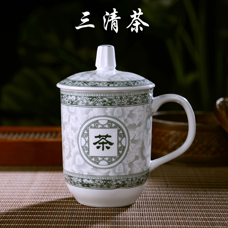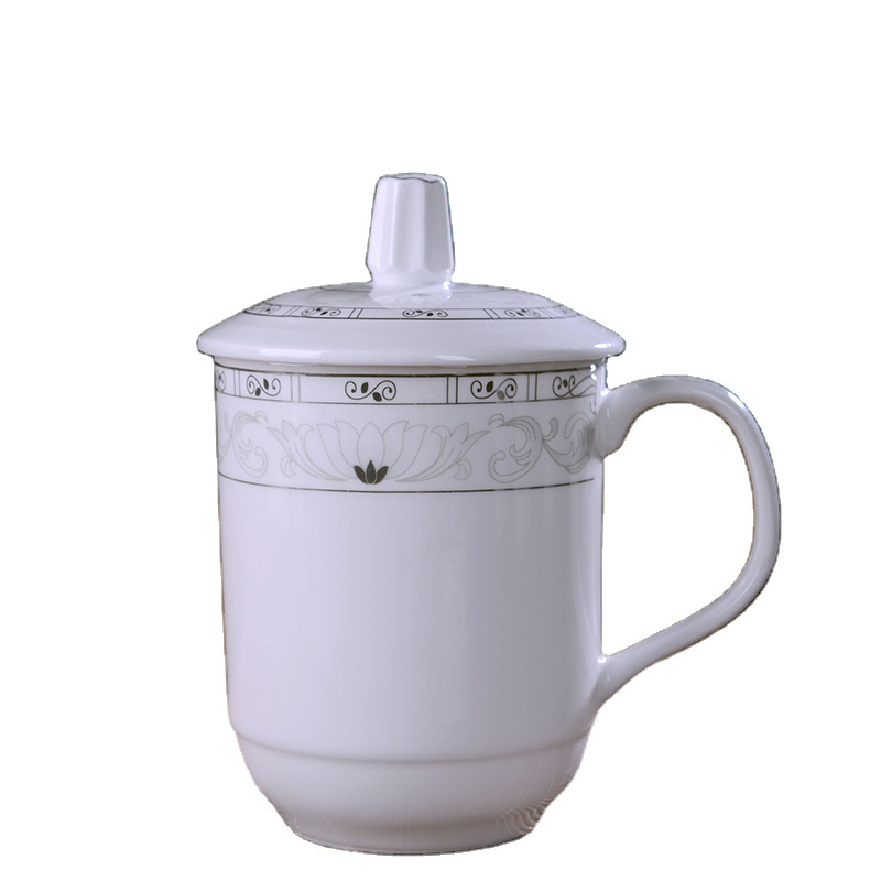 Jingdezhen 세라믹 찻잔 세트 사무실 컵 뚜껑 뼈 중국 회의 컵 가정 선물 사무실 컵