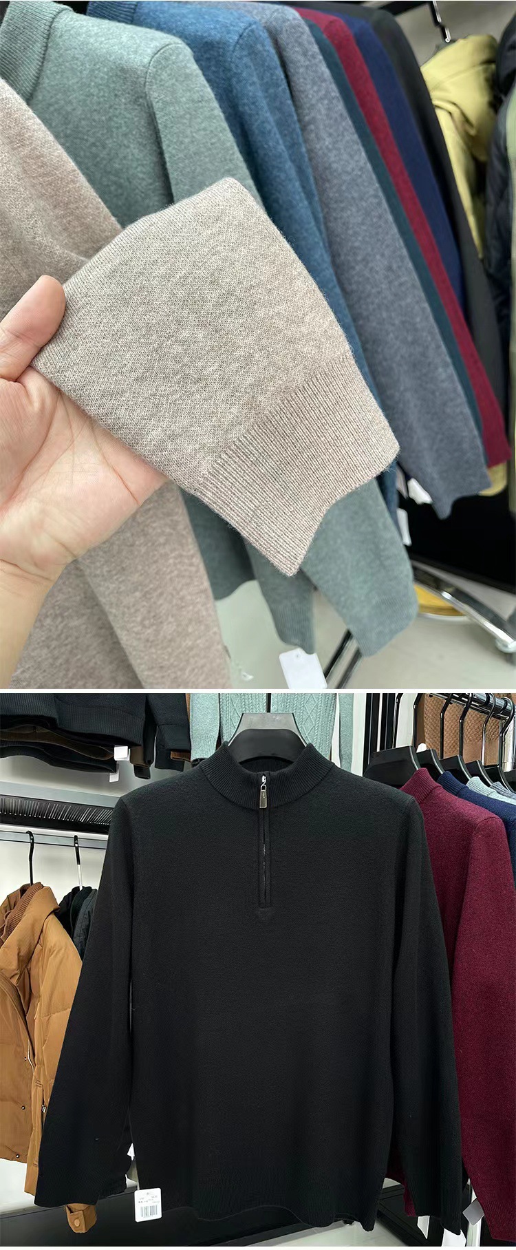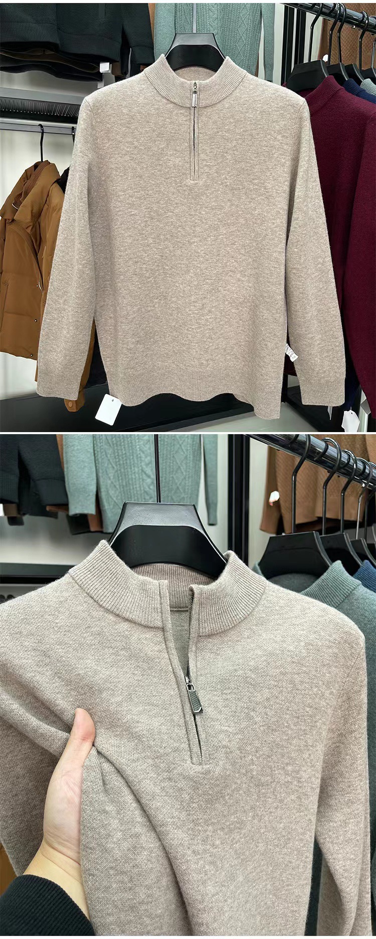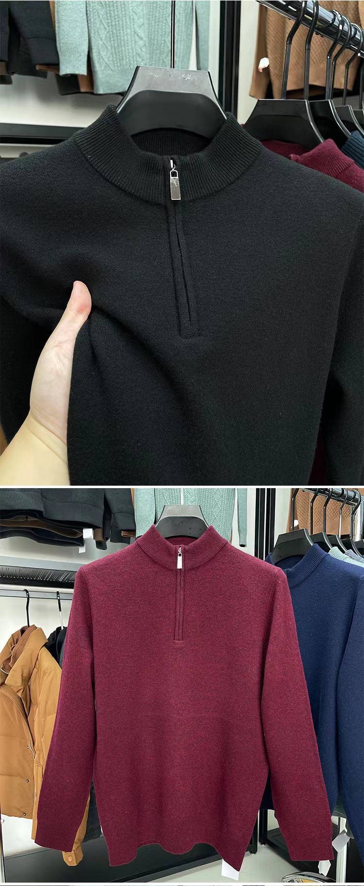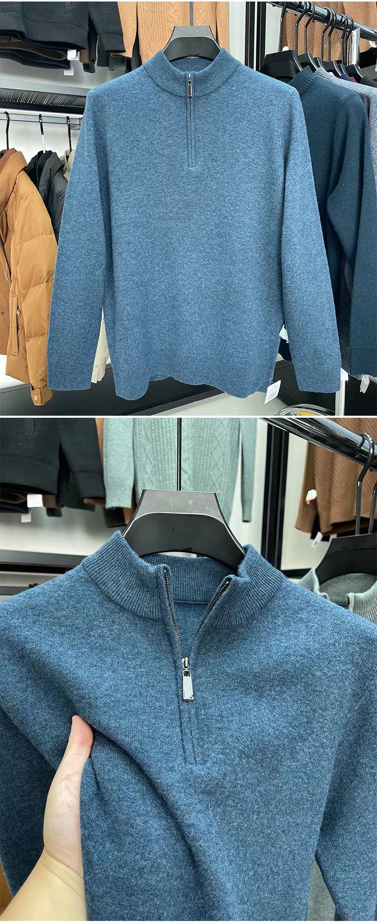 퓨어 울 스웨터 남성용 하프 터틀넥 지퍼 스웨터 남성용 두꺼운 따뜻한 겨울 단색 탑 스웨터 베이스 셔츠스토어 가기