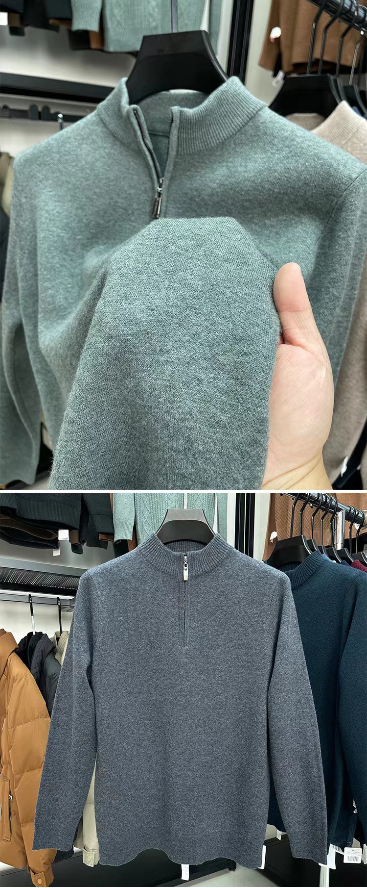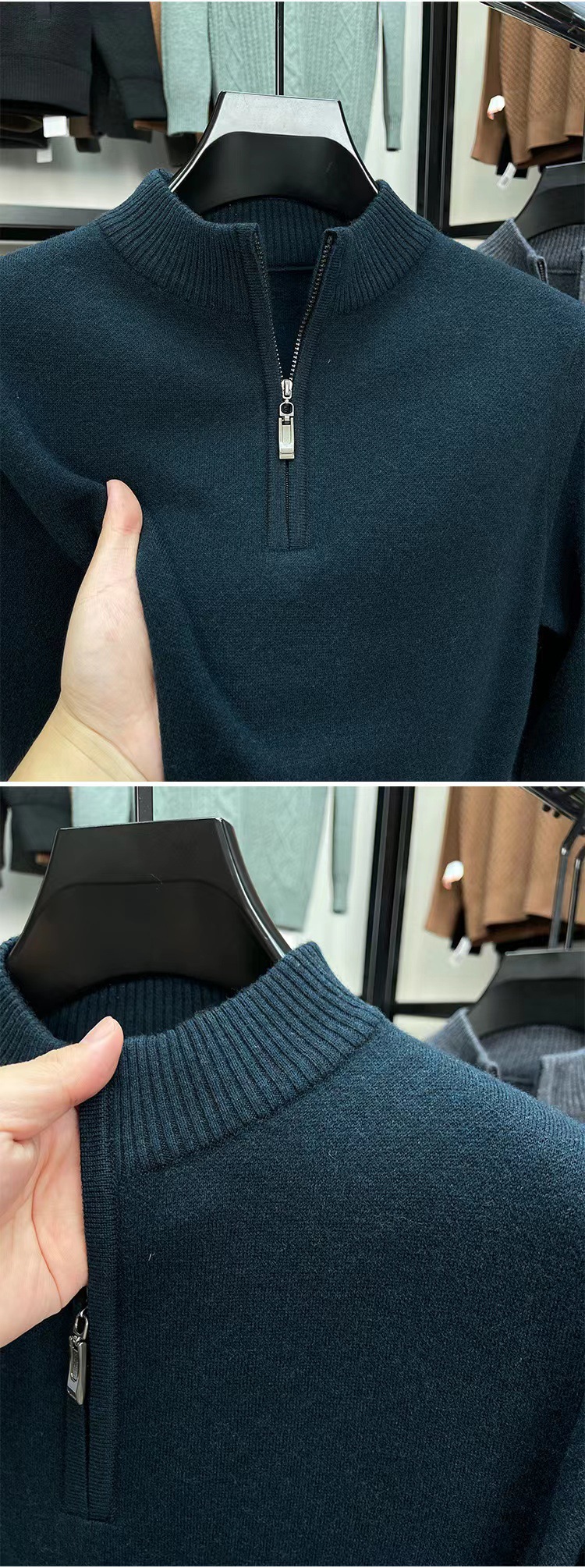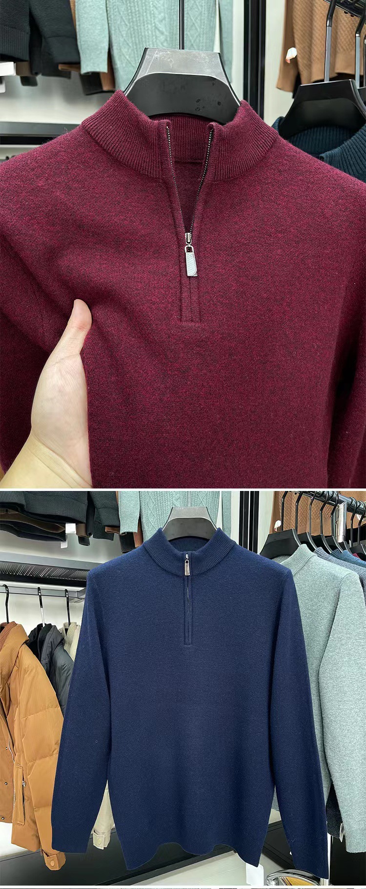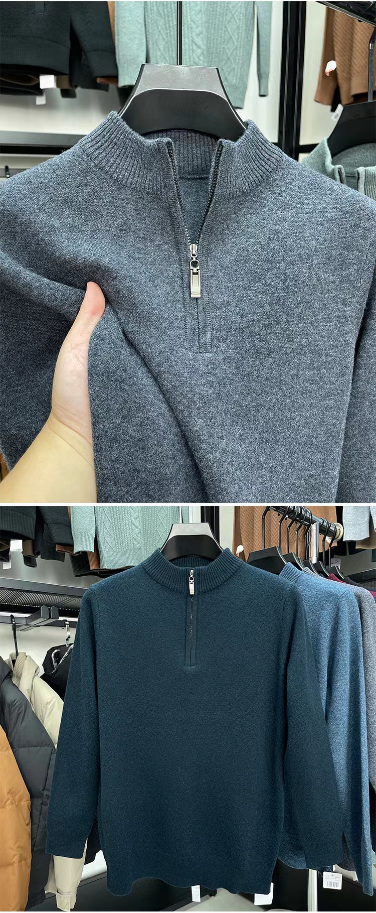 퓨어 울 스웨터 남성용 하프 터틀넥 지퍼 스웨터 남성용 두꺼운 따뜻한 겨울 단색 탑 스웨터 베이스 셔츠스토어 가기