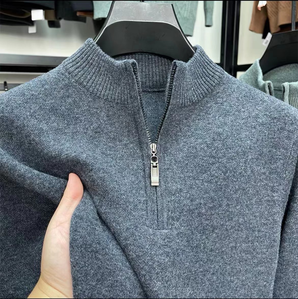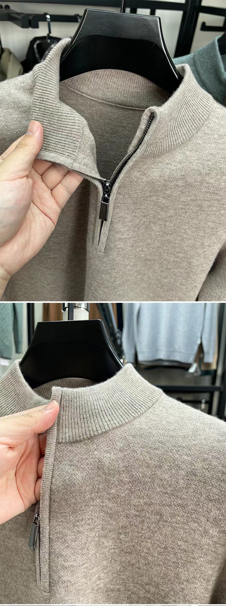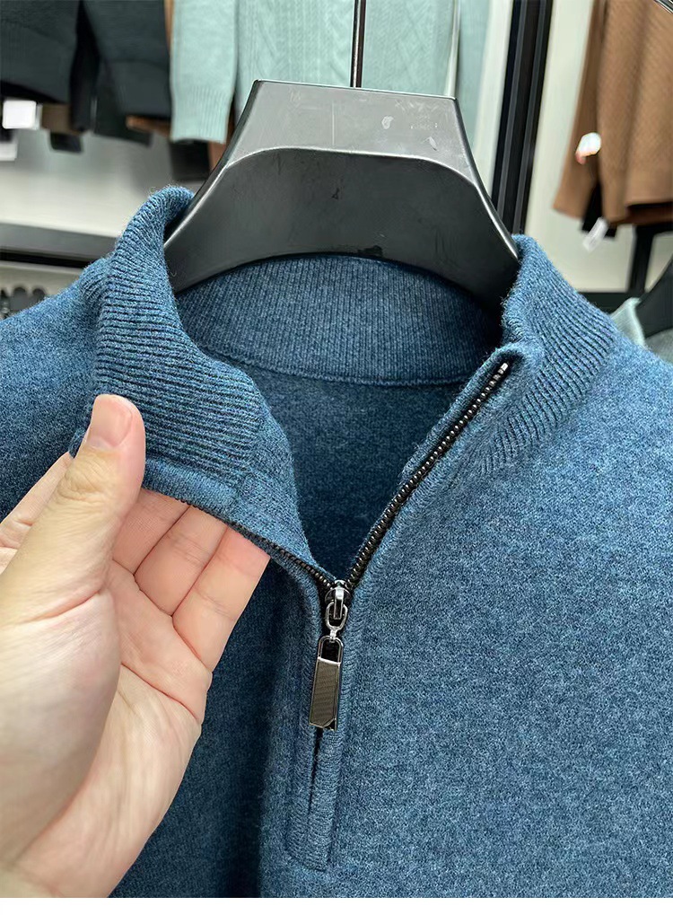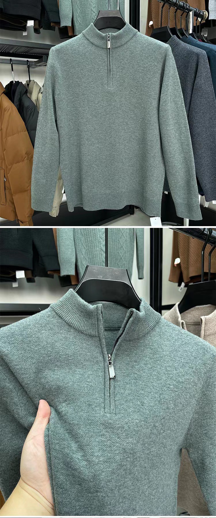 퓨어 울 스웨터 남성용 하프 터틀넥 지퍼 스웨터 남성용 두꺼운 따뜻한 겨울 단색 탑 스웨터 베이스 셔츠스토어 가기
