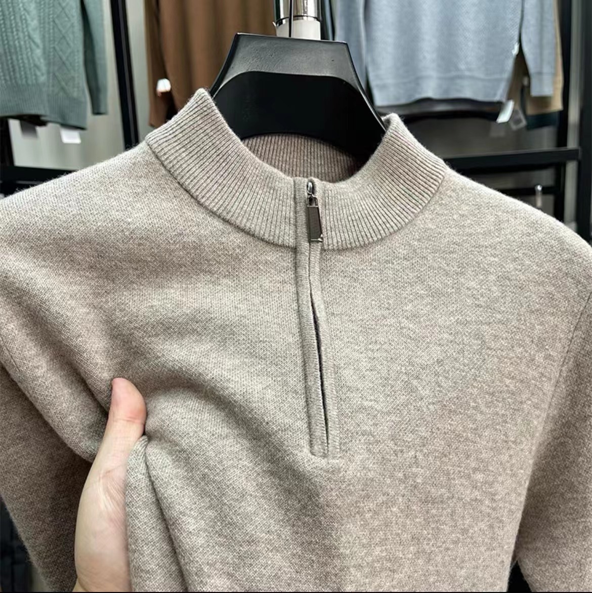 퓨어 울 스웨터 남성용 하프 터틀넥 지퍼 스웨터 남성용 두꺼운 따뜻한 겨울 단색 탑 스웨터 베이스 셔츠