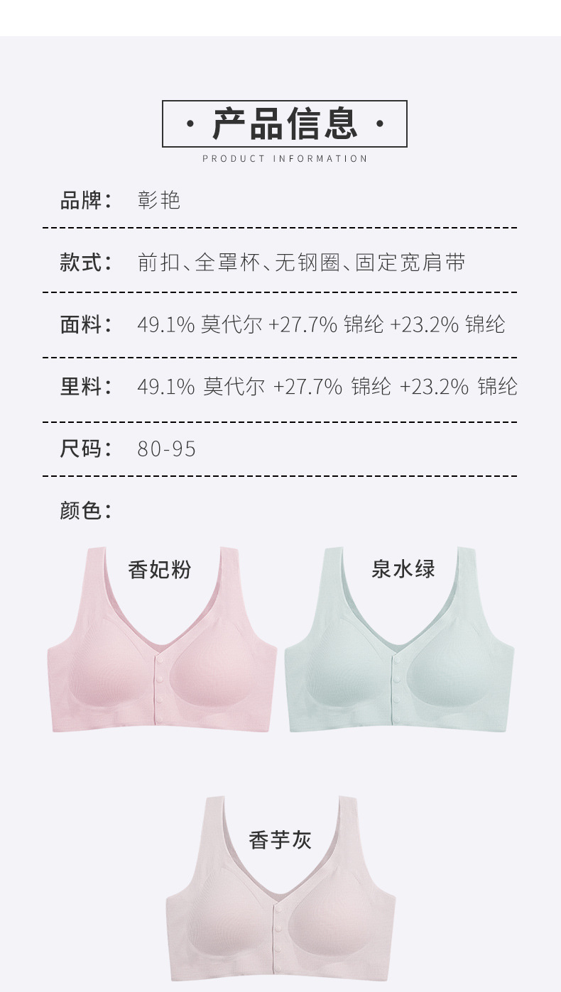 Zhangyan Lanjing Modal Mother's Tracless 속옷 편안한 브래지어 무테 얇은 모임 조끼 앞 버클