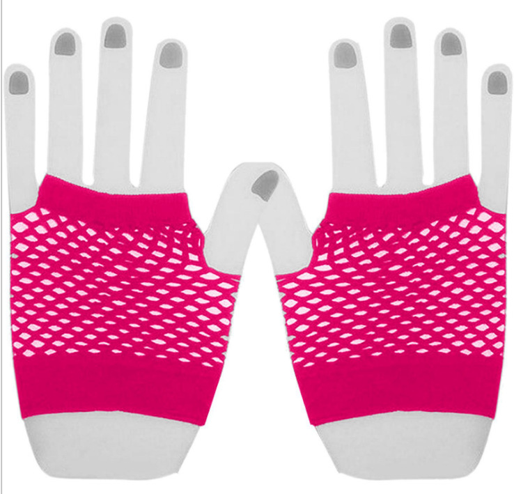국경 1980 년대 네온 망사 장갑 파티 볼 축제 반 손가락 낚시 그물 메쉬 장갑