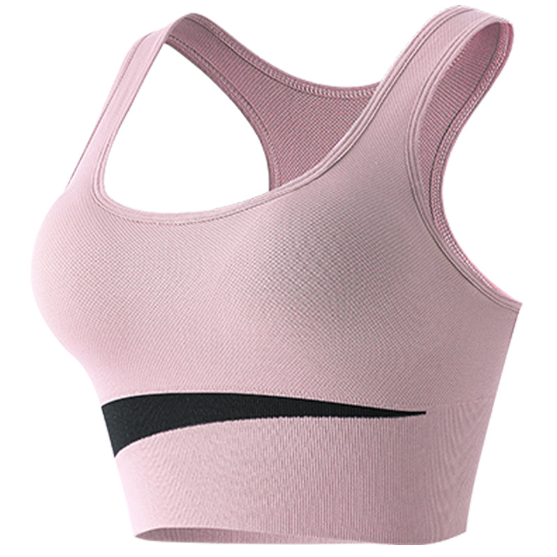 대조적 인 색상의 아름다움 다시 스포츠 속옷 여성의 무선 충격 방지 조끼 요가 빠른 건조 스포츠 브래지어를 실행하는 피트니스
