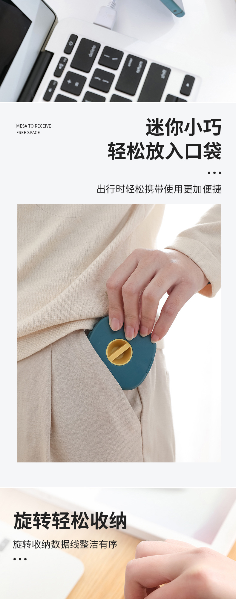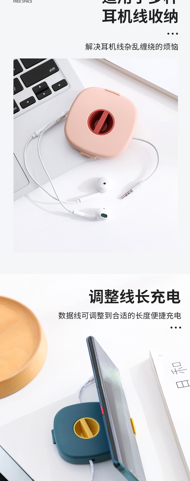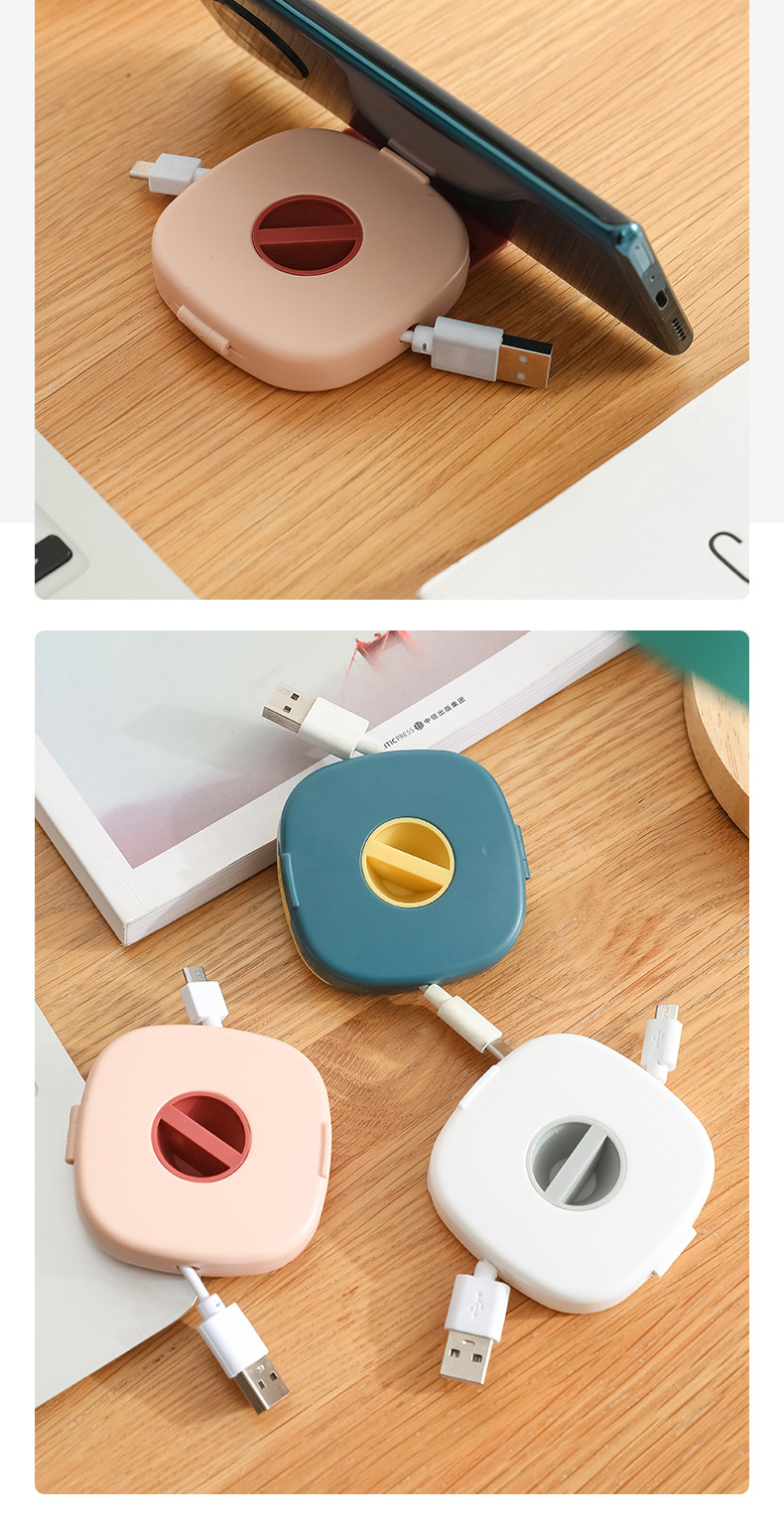 휴대용 회전식 데이터 케이블 헤드폰 케이블 와인더(휴대폰 홀더 포함) 충전 케이블 정리 보관함 케이블 정리