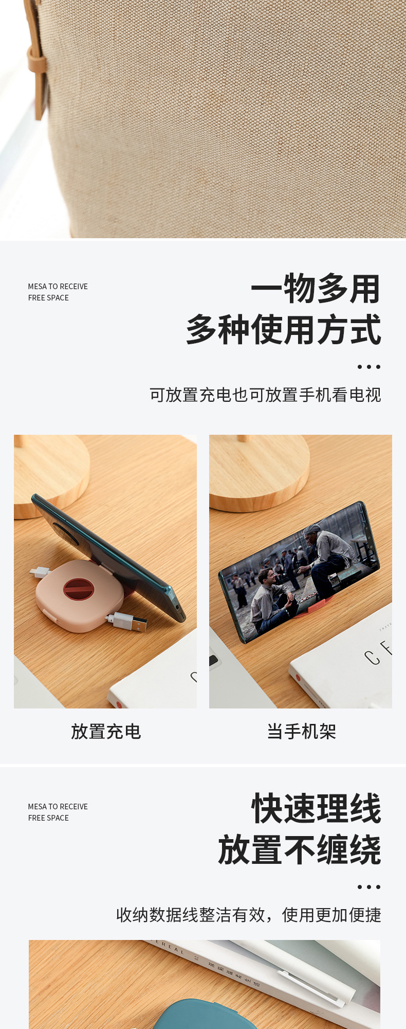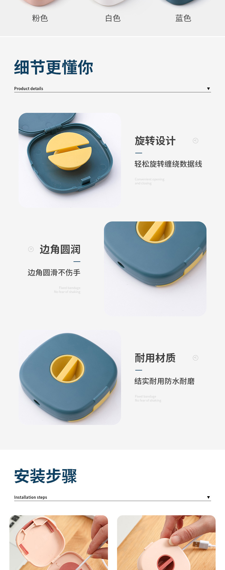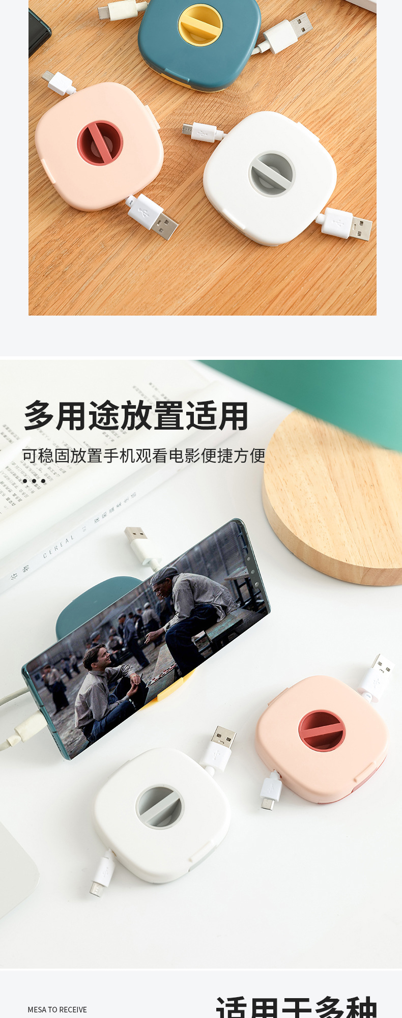 휴대용 회전식 데이터 케이블 헤드폰 케이블 와인더(휴대폰 홀더 포함) 충전 케이블 정리 보관함 케이블 정리