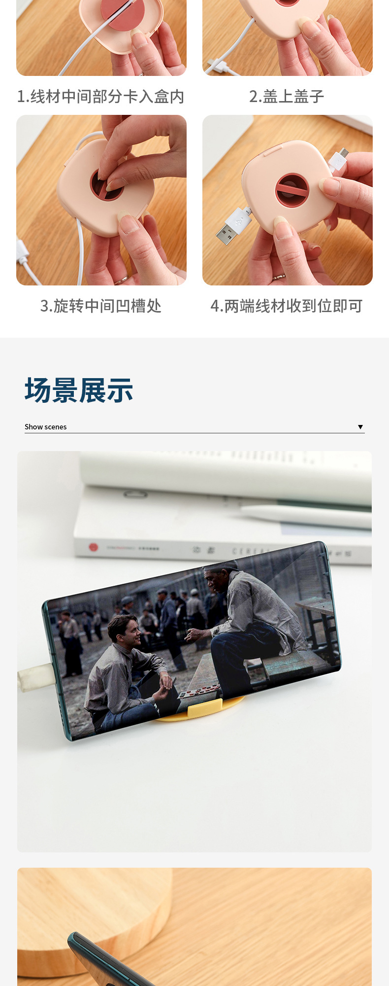 휴대용 회전식 데이터 케이블 헤드폰 케이블 와인더(휴대폰 홀더 포함) 충전 케이블 정리 보관함 케이블 정리스토어 가기