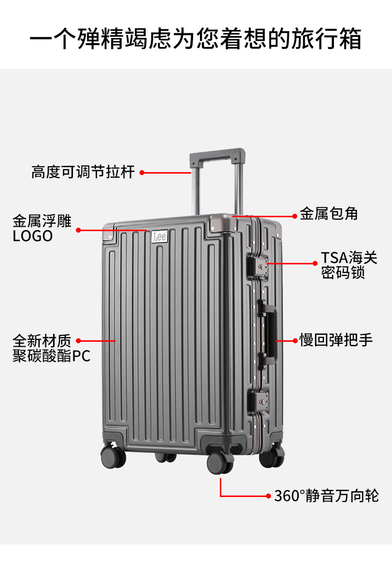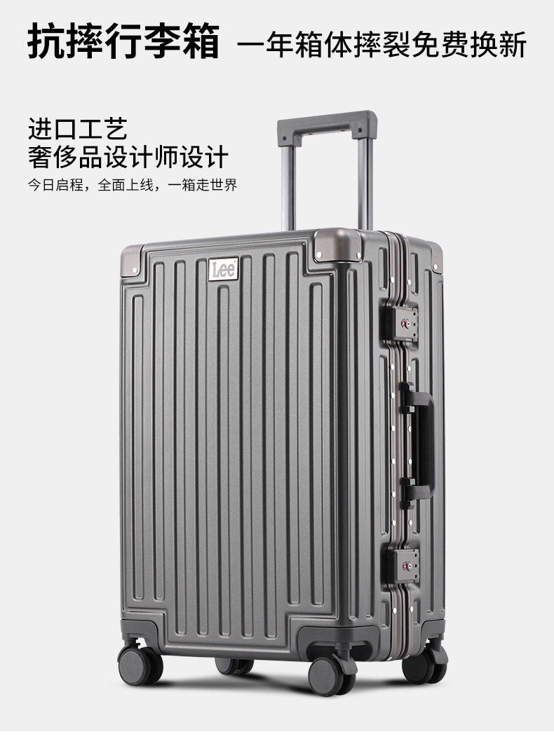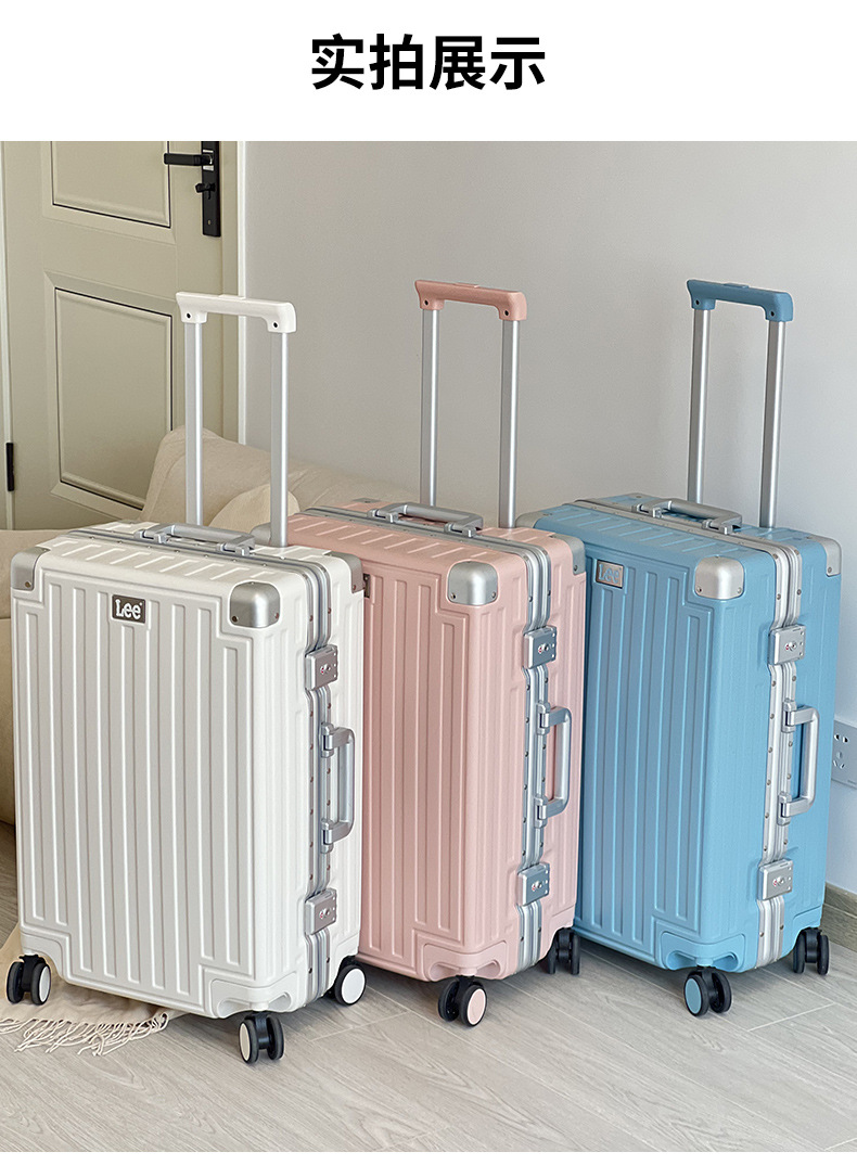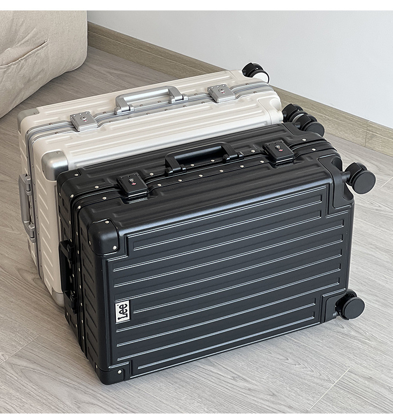 Lee 가방 여성 비즈니스 가방 남성 브랜드 알루미늄 프레임 트롤리 케이스 자동 휠 가방 암호 상자 낙하 방지스토어 가기