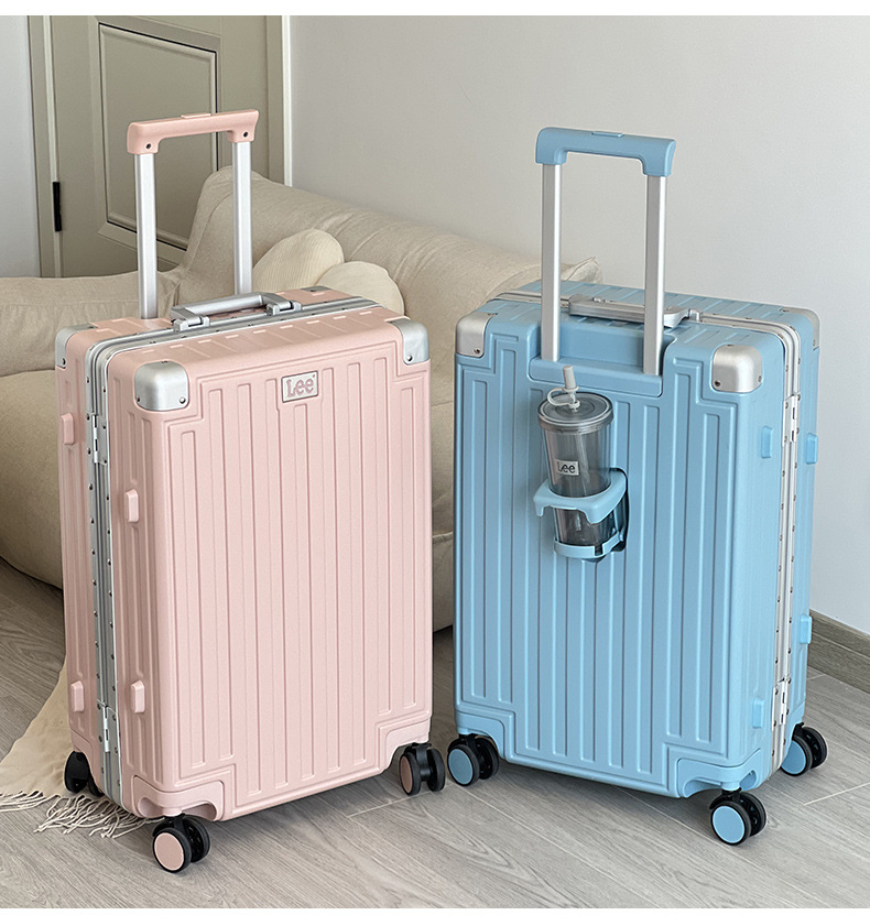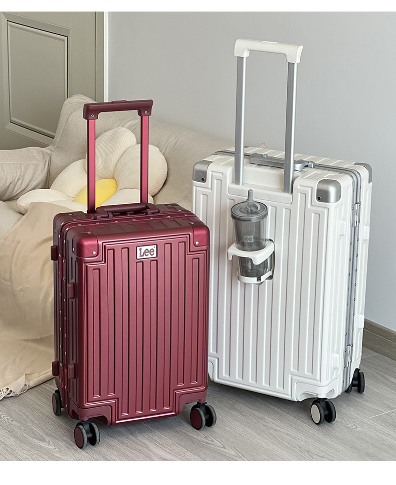 Lee 가방 여성 비즈니스 가방 남성 브랜드 알루미늄 프레임 트롤리 케이스 자동 휠 가방 암호 상자 낙하 방지