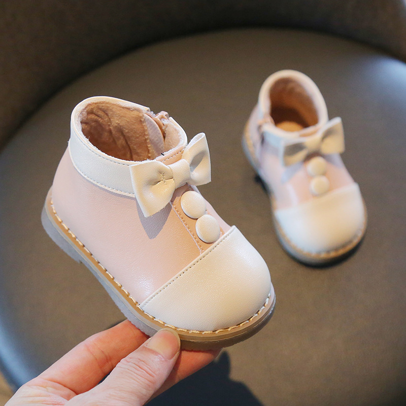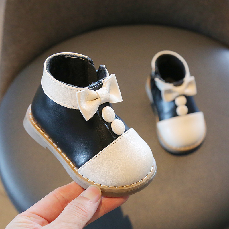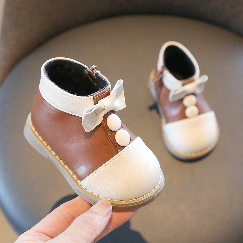Mab Bear 겨울 아기 소녀 발목 부츠 복고풍 작은 가죽 신발 소녀 기모 마틴 부츠 아기 유아 신발-무료 배송!스토어 가기