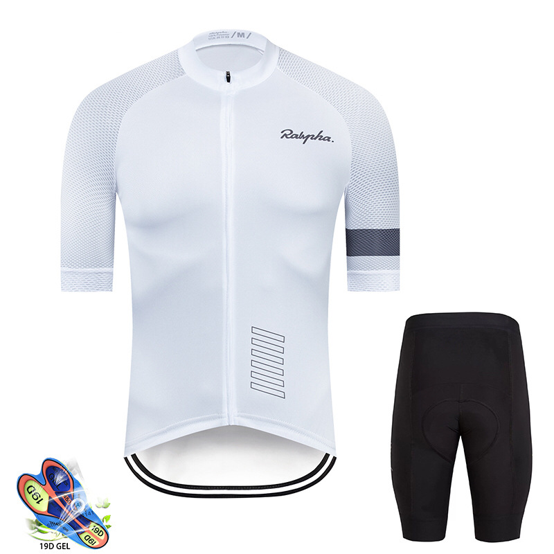 새로운 여름 사이클링 의류 남자의 산악 자전거 흰색 짧은 소매 최고 경쟁 도로 자전거 의류 승마 세트스토어 가기