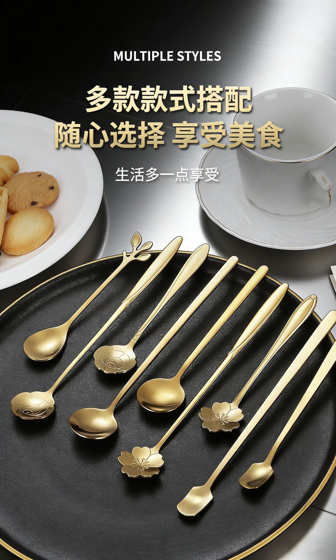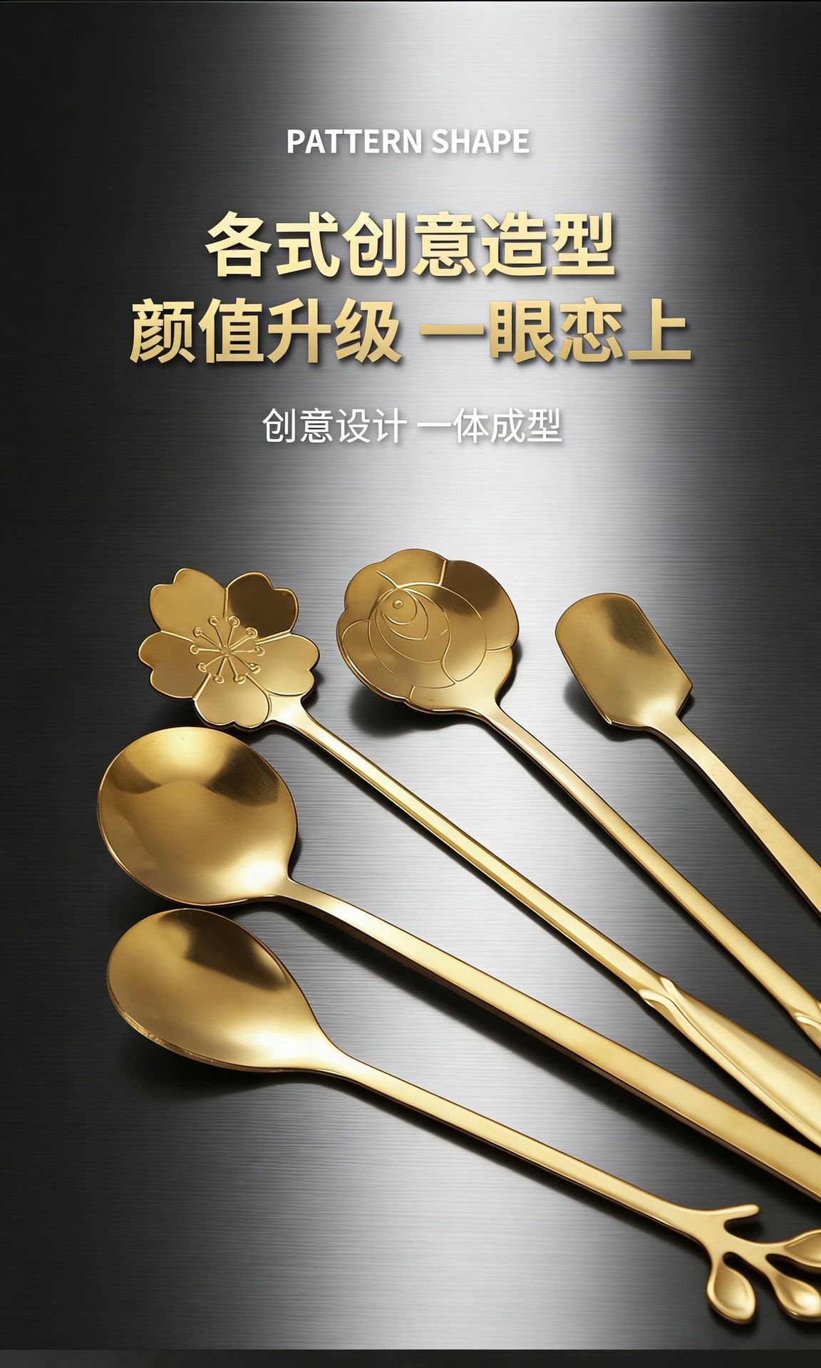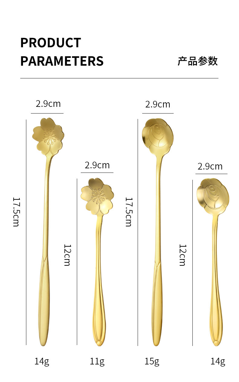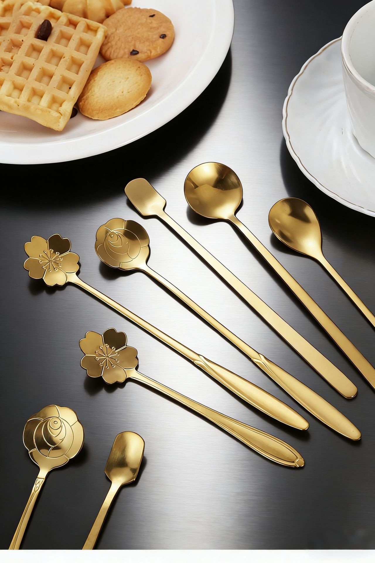 스테인레스 스틸 벚꽃 스푼 다양한 믹싱 스푼 잎 스푼 황금 작은 둥근 스푼 짧은 손잡이 커피 스푼 긴 손잡이 머그 스푼