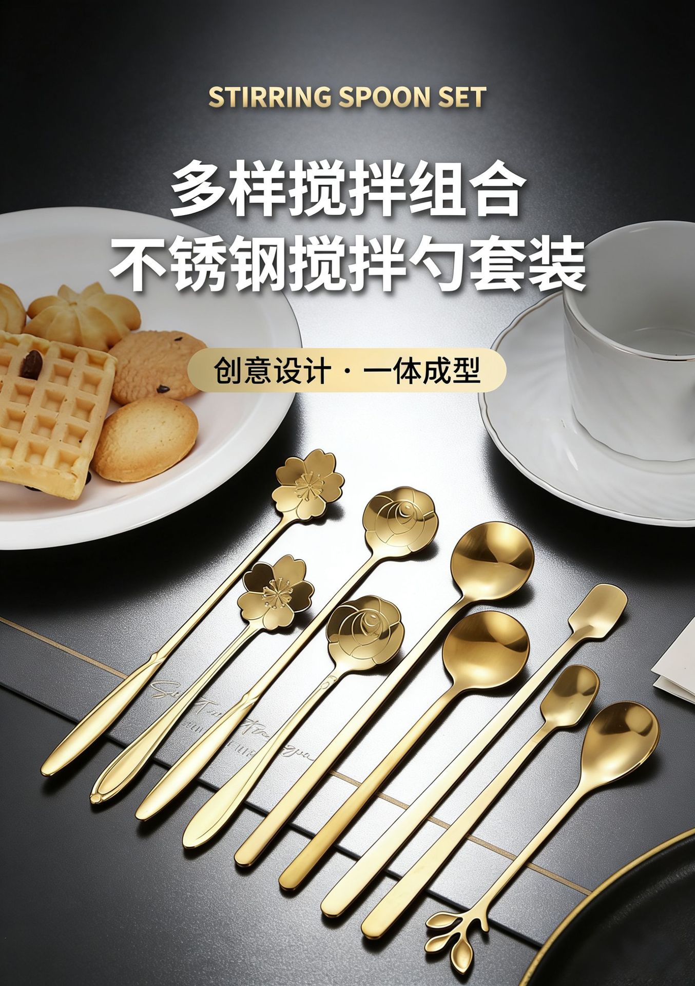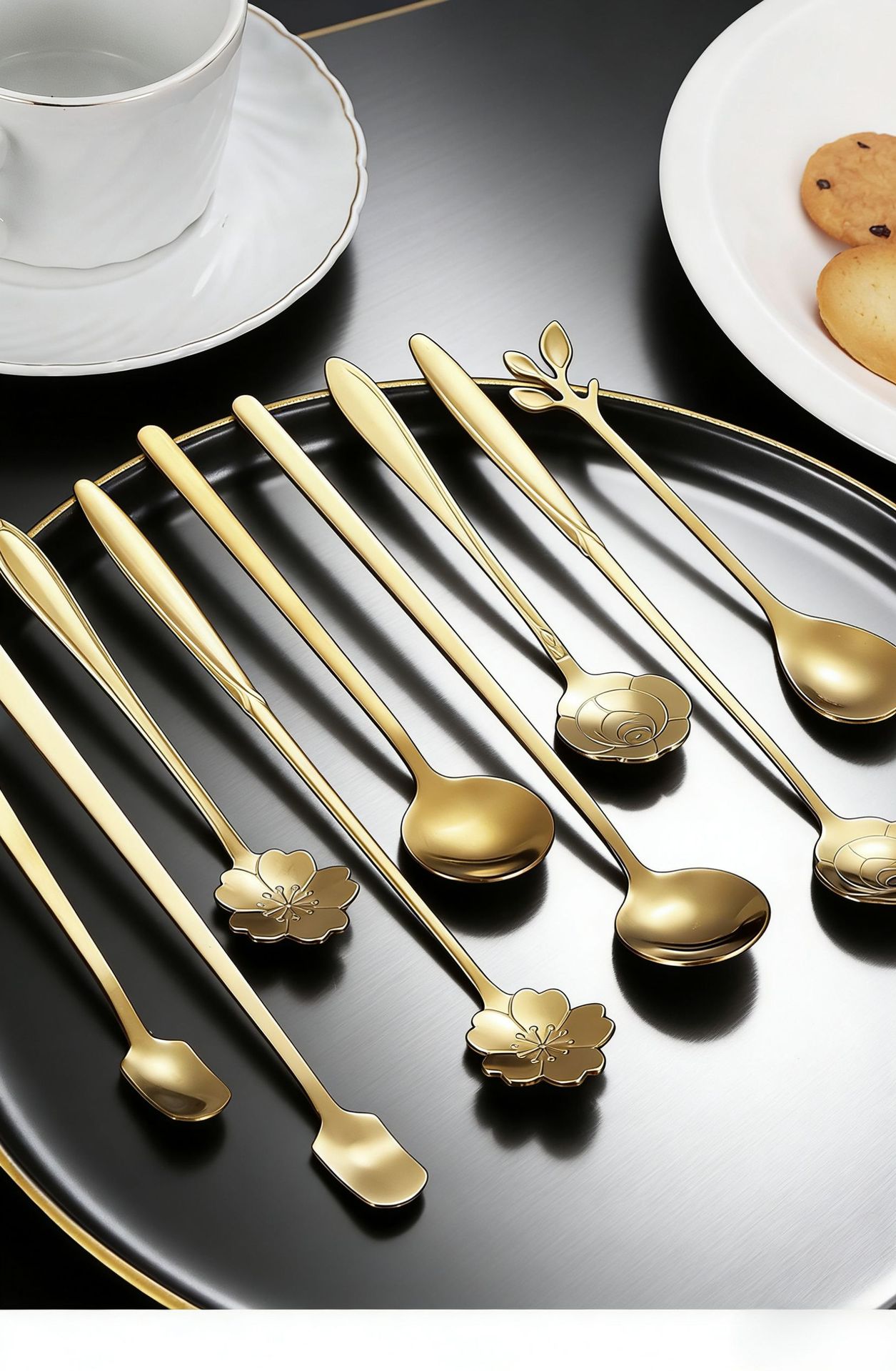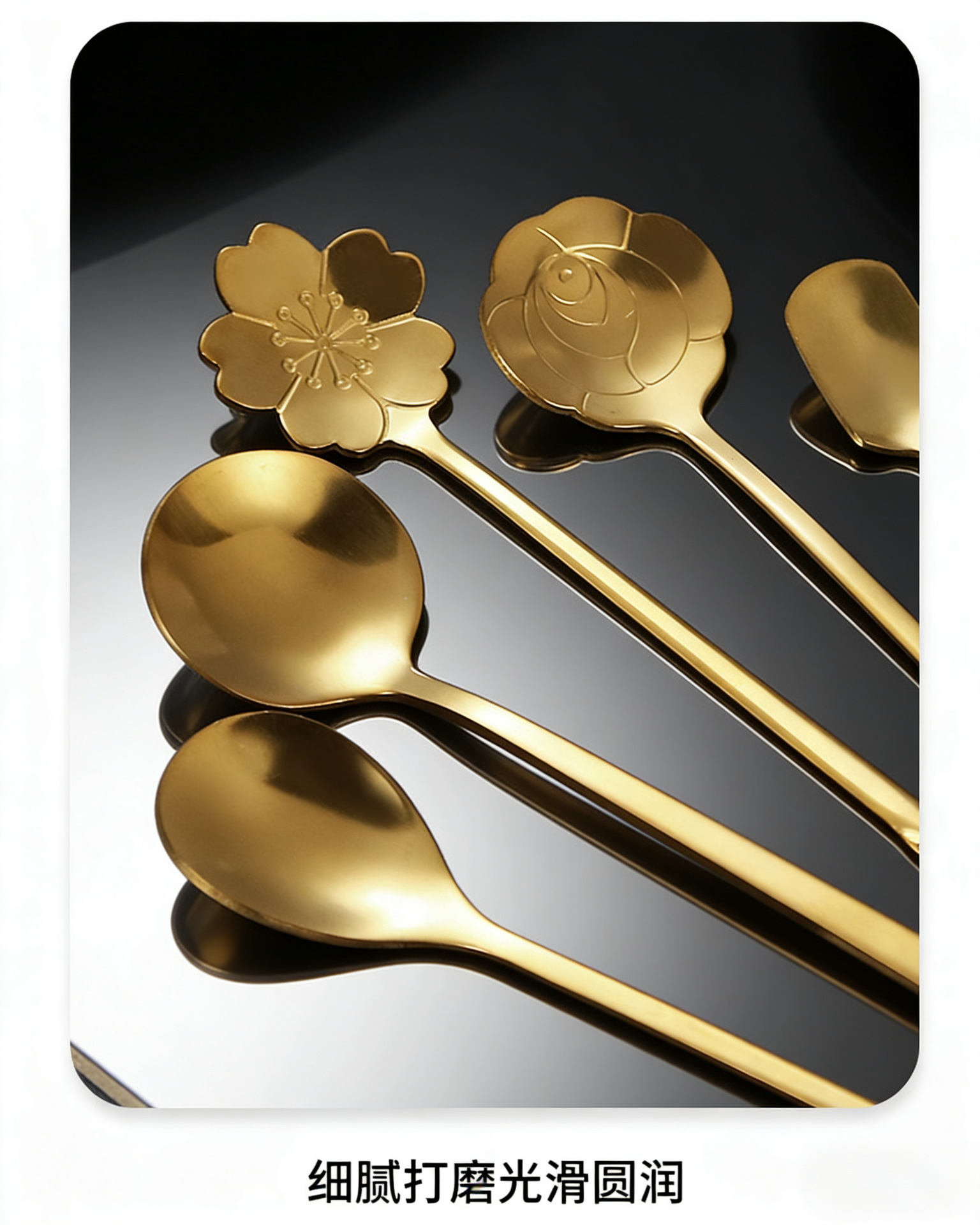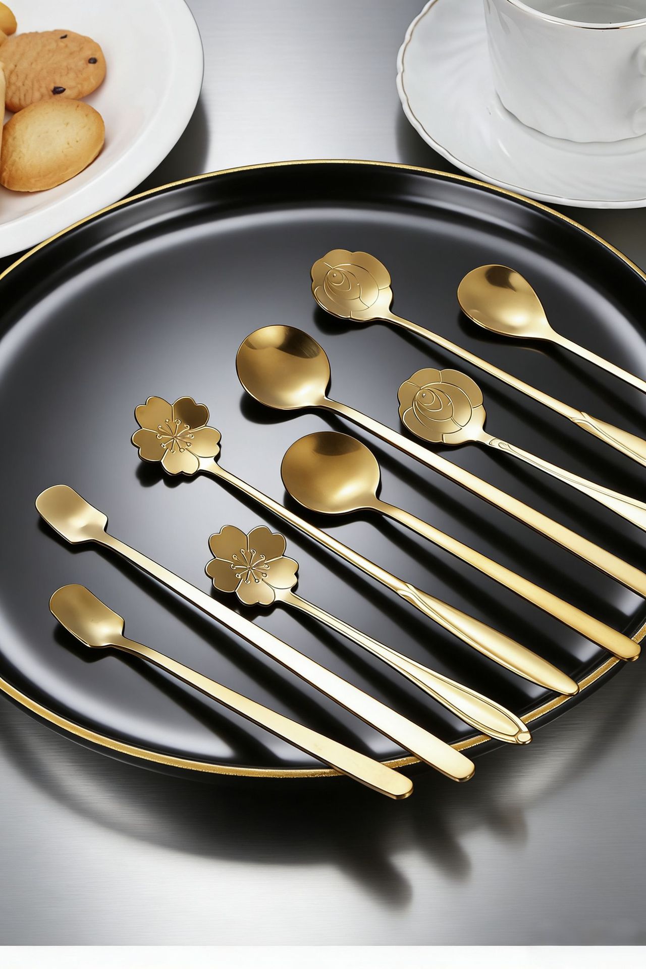 스테인레스 스틸 벚꽃 스푼 다양한 믹싱 스푼 잎 스푼 황금 작은 둥근 스푼 짧은 손잡이 커피 스푼 긴 손잡이 머그 스푼