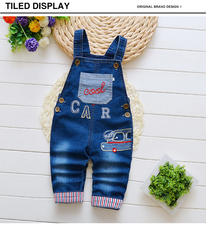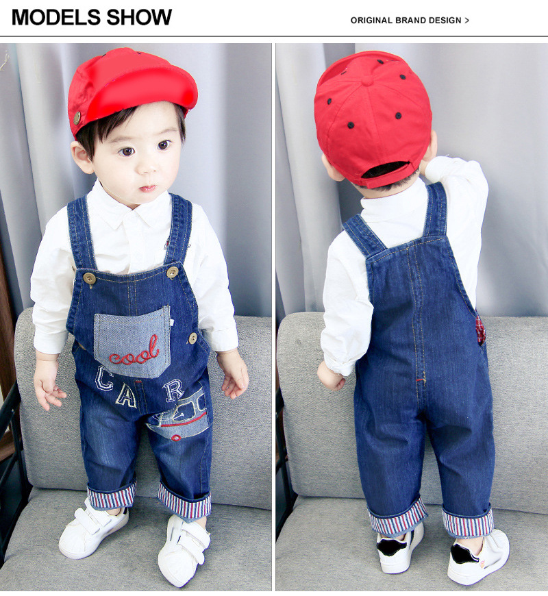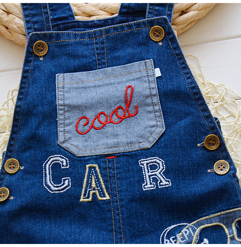 남아 및 여아용 작업복, 0~4세 어린이용 봄, 가을 스타일, 데님 바지, 자수 자동차 데님 작업복스토어 가기