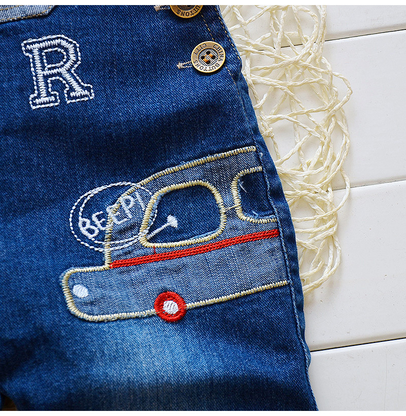 남아 및 여아용 작업복, 0~4세 어린이용 봄, 가을 스타일, 데님 바지, 자수 자동차 데님 작업복