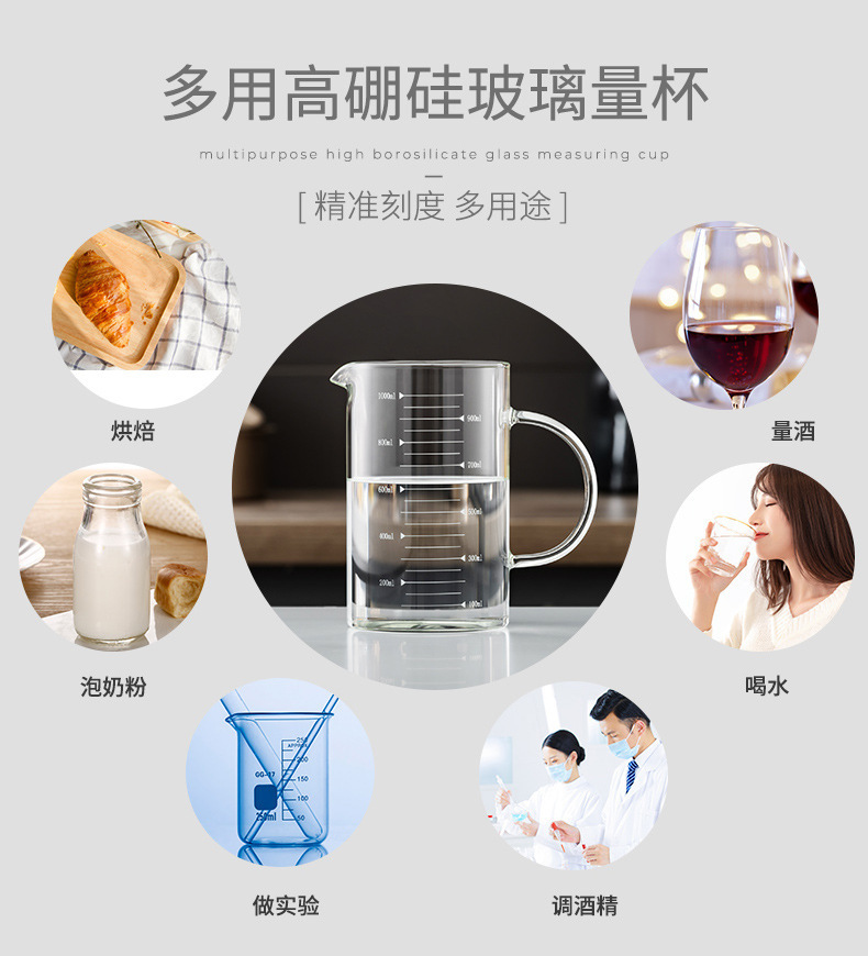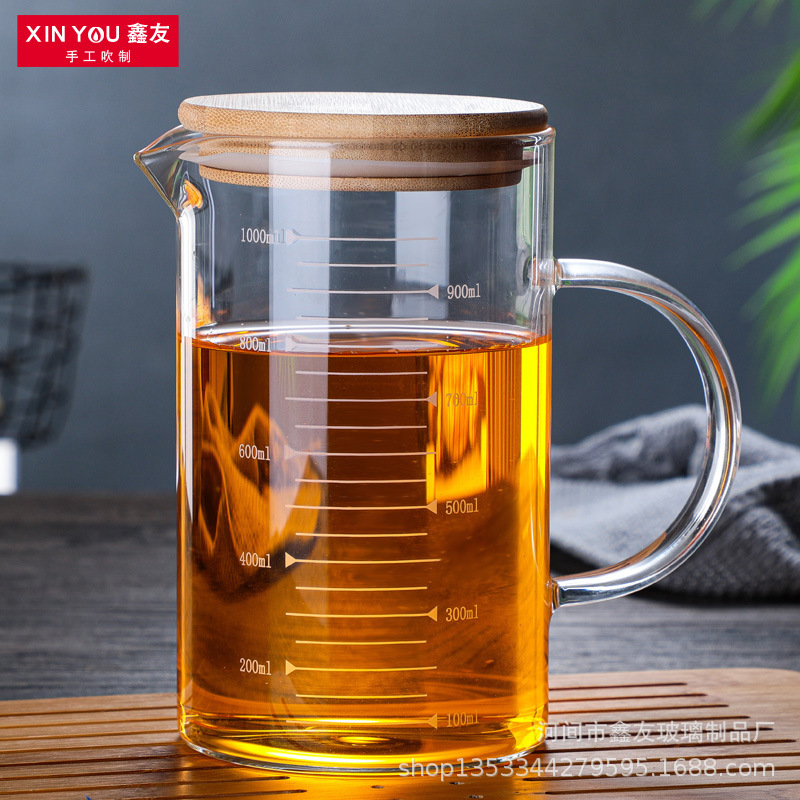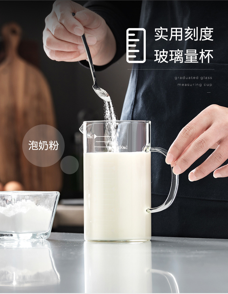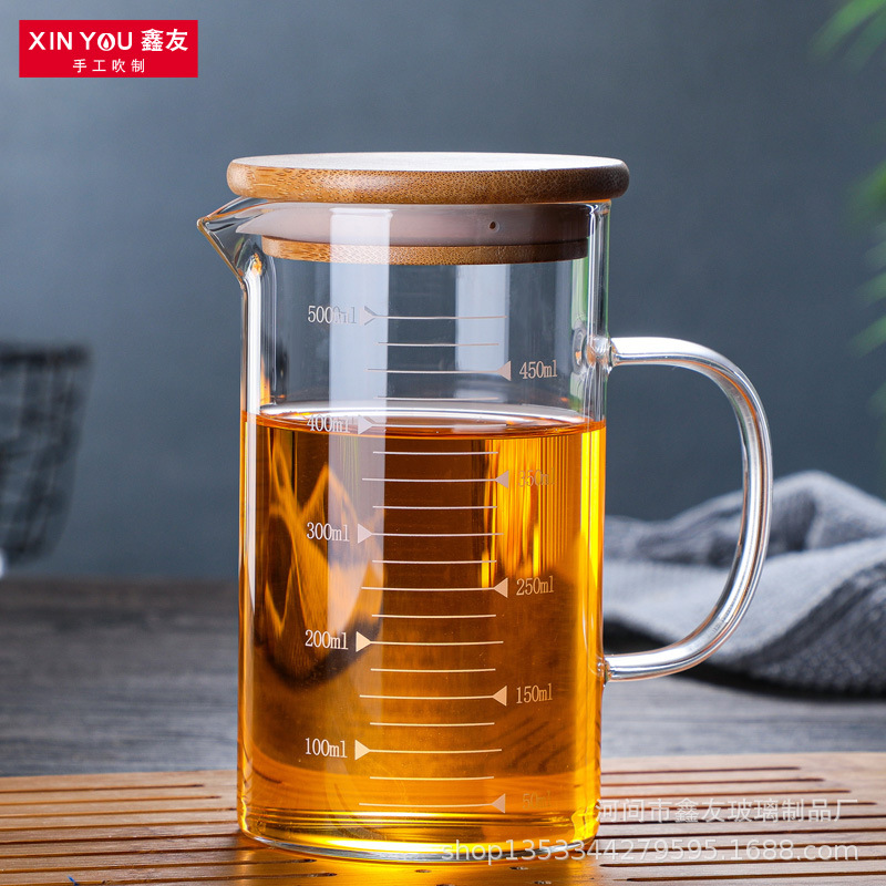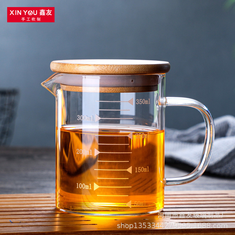 저울 및 뚜껑 유리가있는 가정용 두꺼운 비커 측정 컵 우유 컵 베이킹 측정 컵 중년 난방 측정 컵