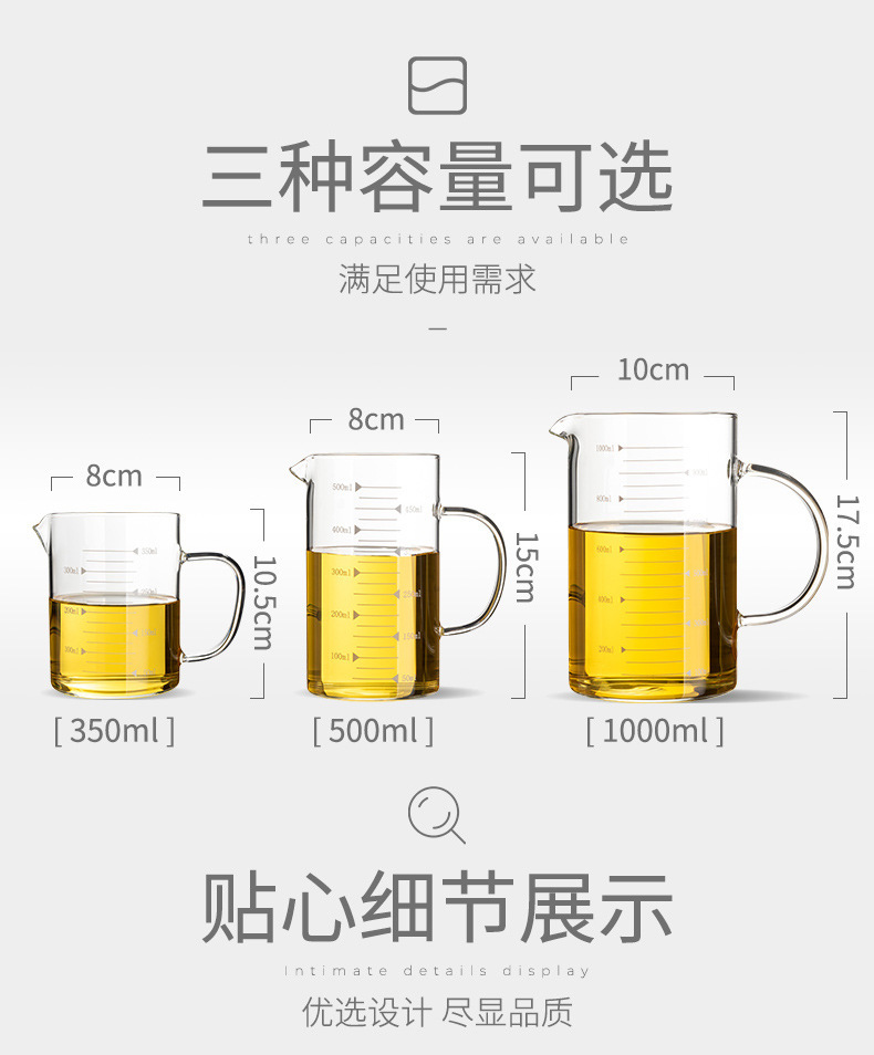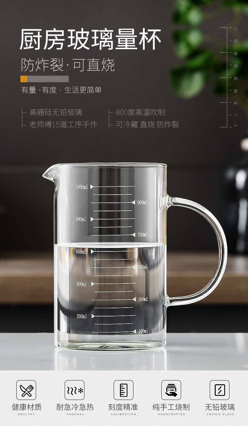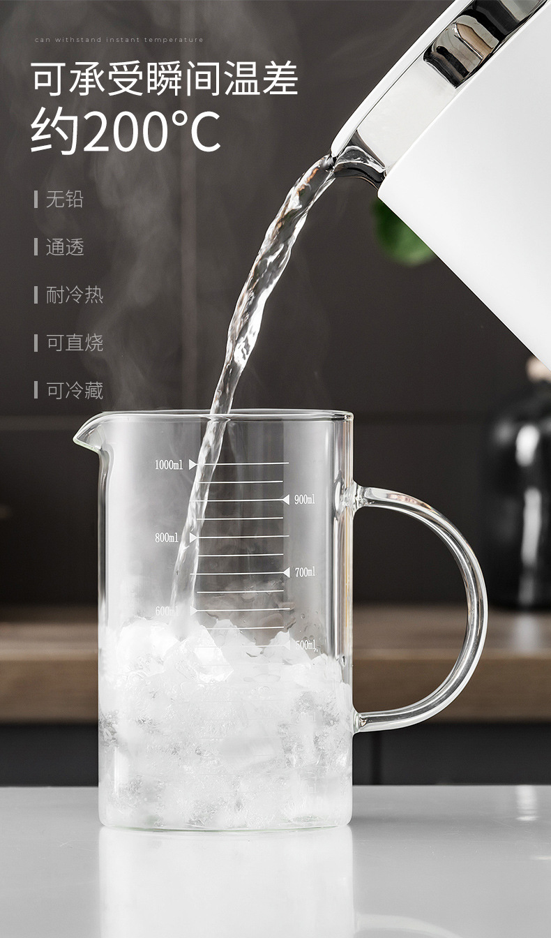 저울 및 뚜껑 유리가있는 가정용 두꺼운 비커 측정 컵 우유 컵 베이킹 측정 컵 중년 난방 측정 컵