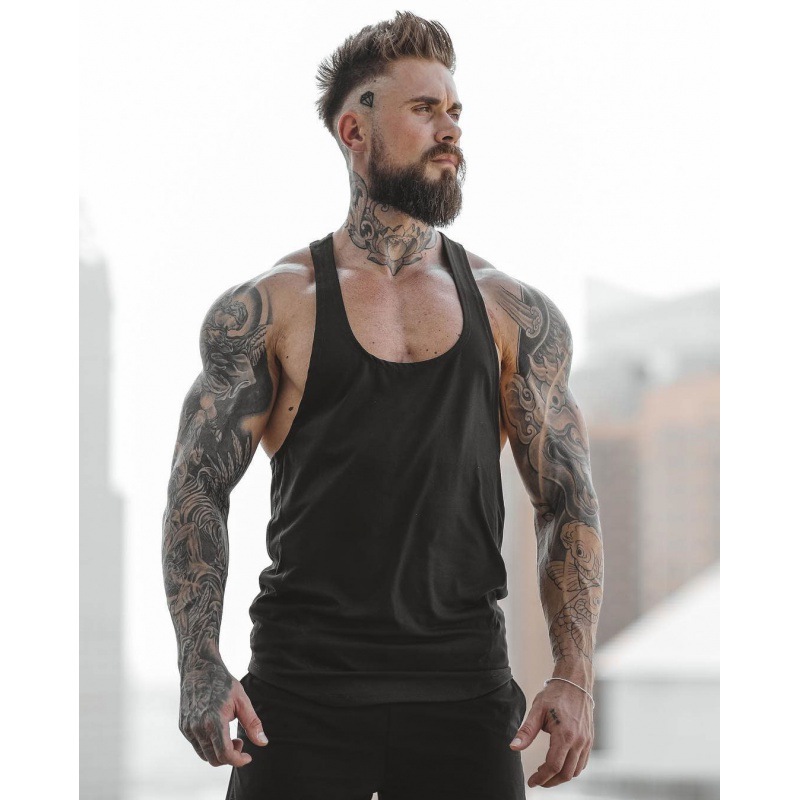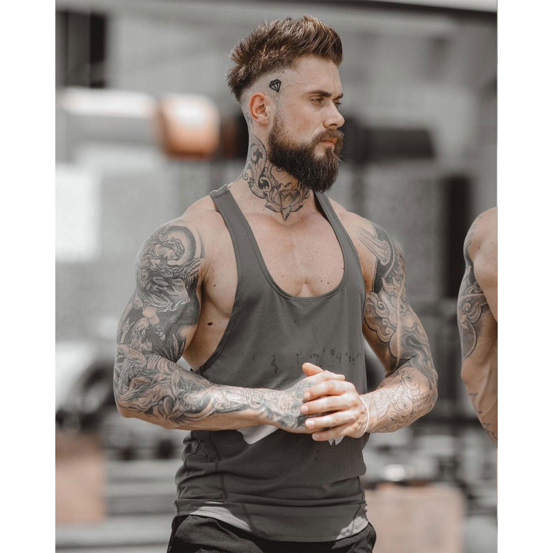 근육 피트니스 남성 가을, 여름 피트니스 스포츠 러닝 캐주얼 탄성 속건성 스플 라이스 레이서 조끼스토어 가기