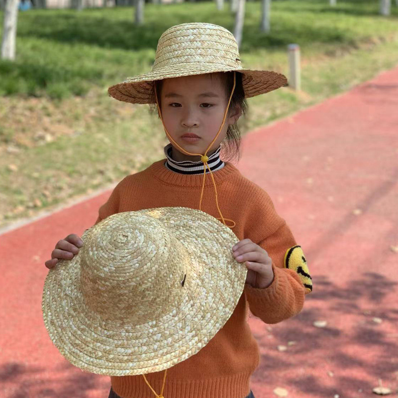 어린이 기본 색상 밀짚 모자 봄과 여름 환경 보호 아기 소년과 소녀 해변 모자 태양 방지 학생 태양 방지 모자