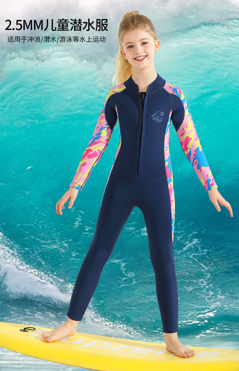 2.5mm 어린이 다이빙 세트 긴팔 원피스 방한 따뜻한 태양 방지 소년 소녀 서핑 세트 해파리 세트 겨울 수영복스토어 가기