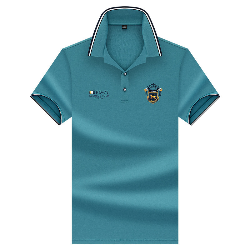 면 반팔 티셔츠 남성 패션 트렌드 자수 반팔 티셔츠 남성용 여름 얇은 탑 폴로 셔츠