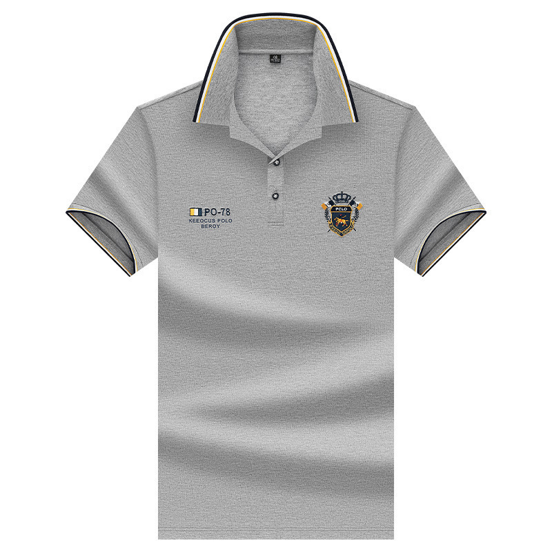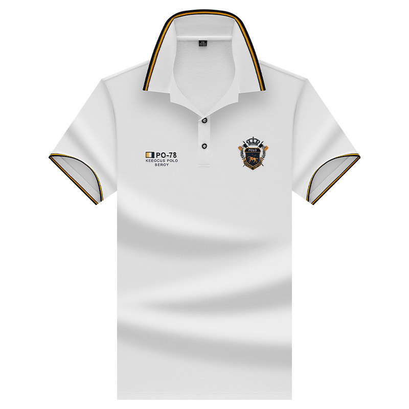 면 반팔 티셔츠 남성 패션 트렌드 자수 반팔 티셔츠 남성용 여름 얇은 탑 폴로 셔츠스토어 가기