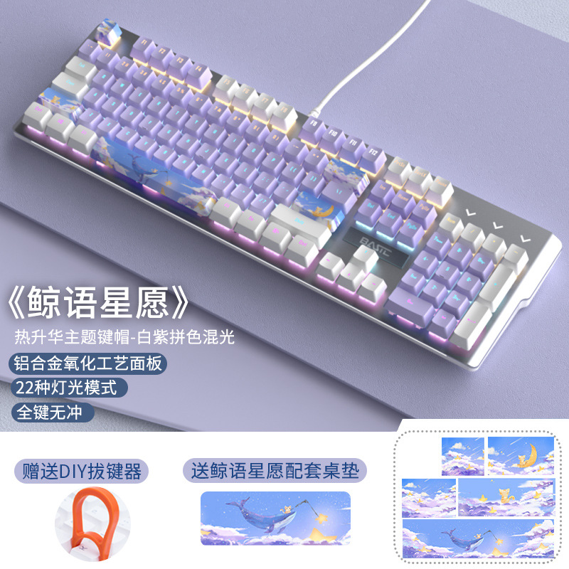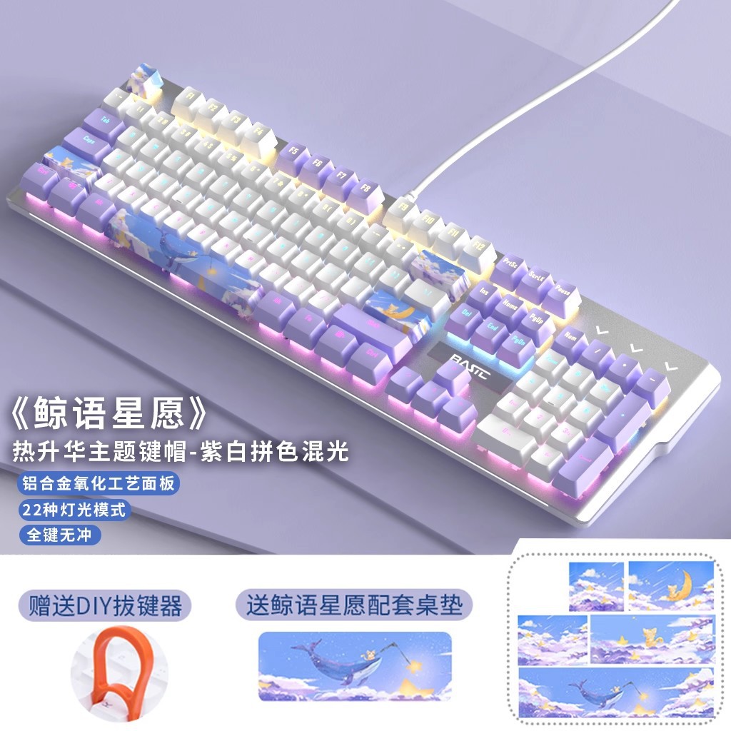 • 화이트 퍼플-혼합 라이트 그린 축 [고래 언어 스타 위시 테마 에디션] + 큰 마우스 패드
