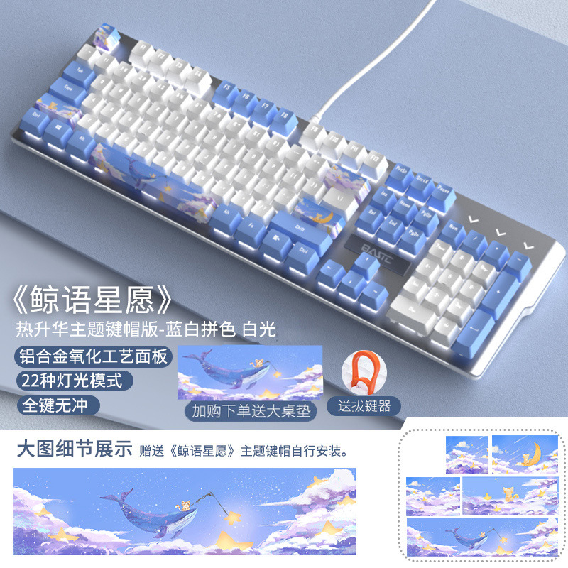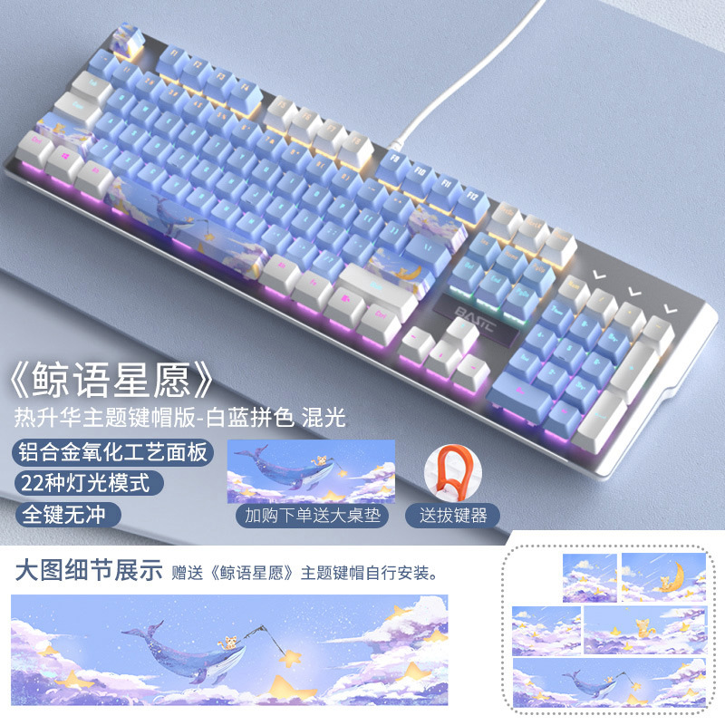 • 화이트 블루-혼합 라이트 그린 축 [고래 언어 스타 위시 테마 에디션] + 큰 마우스 패드