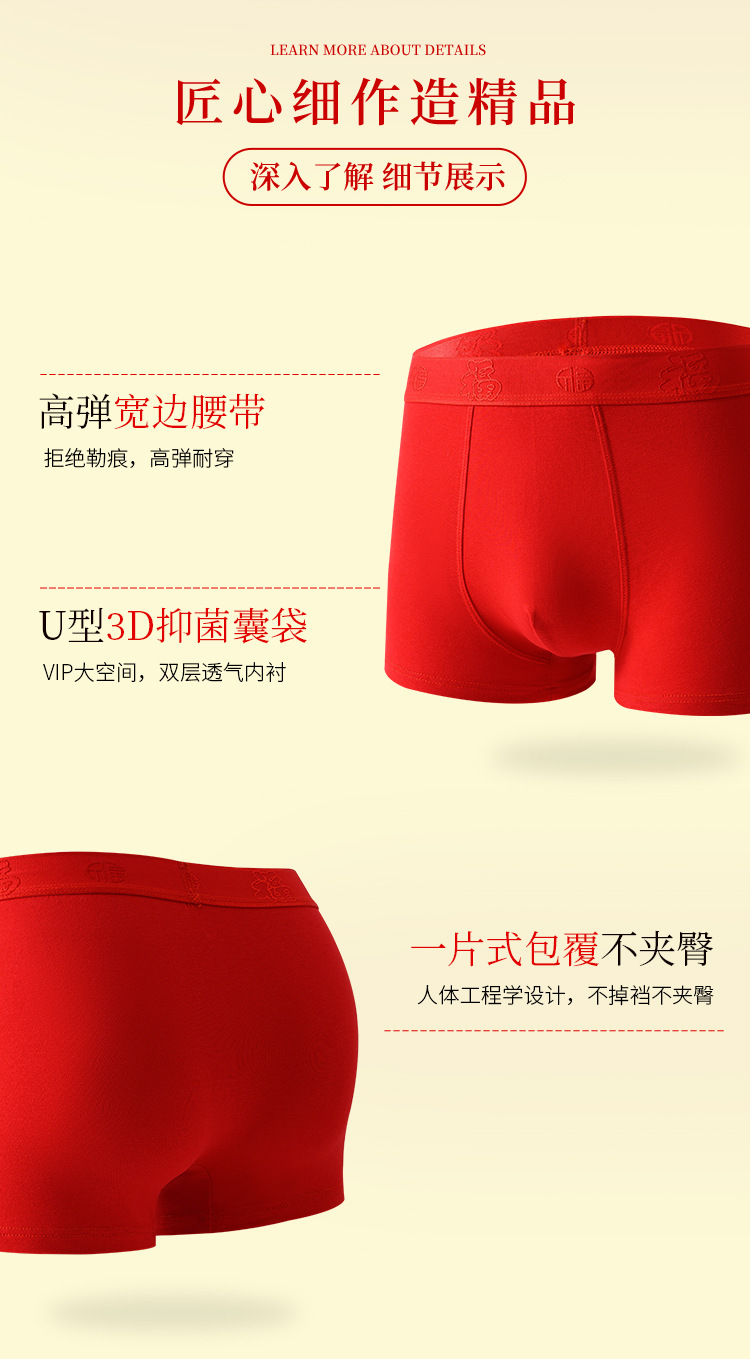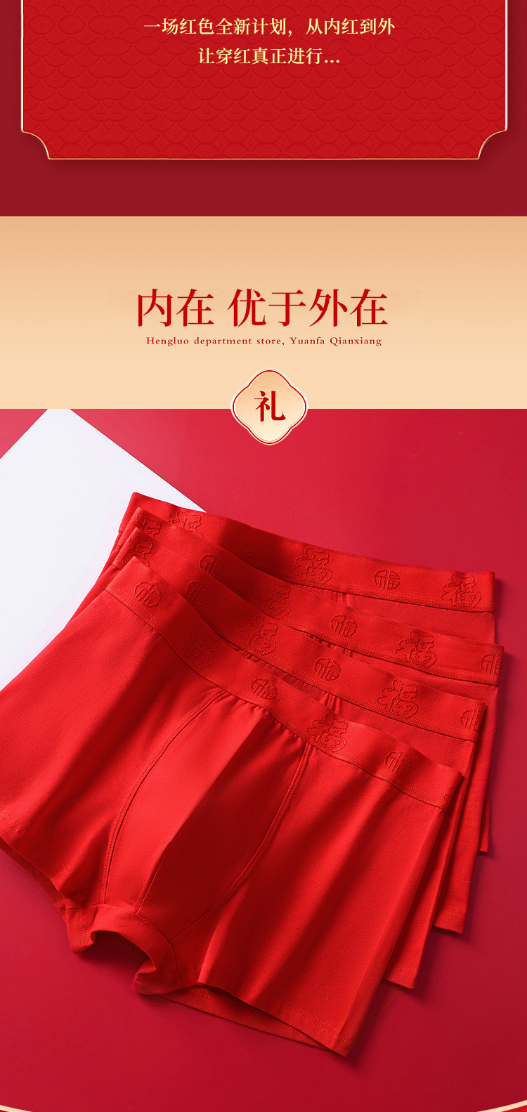 Pingkangle 순면 남성 속옷 도매 올해 큰 빨간 토끼 소년 속옷 네 모서리 순면 속옷 남자스토어 가기