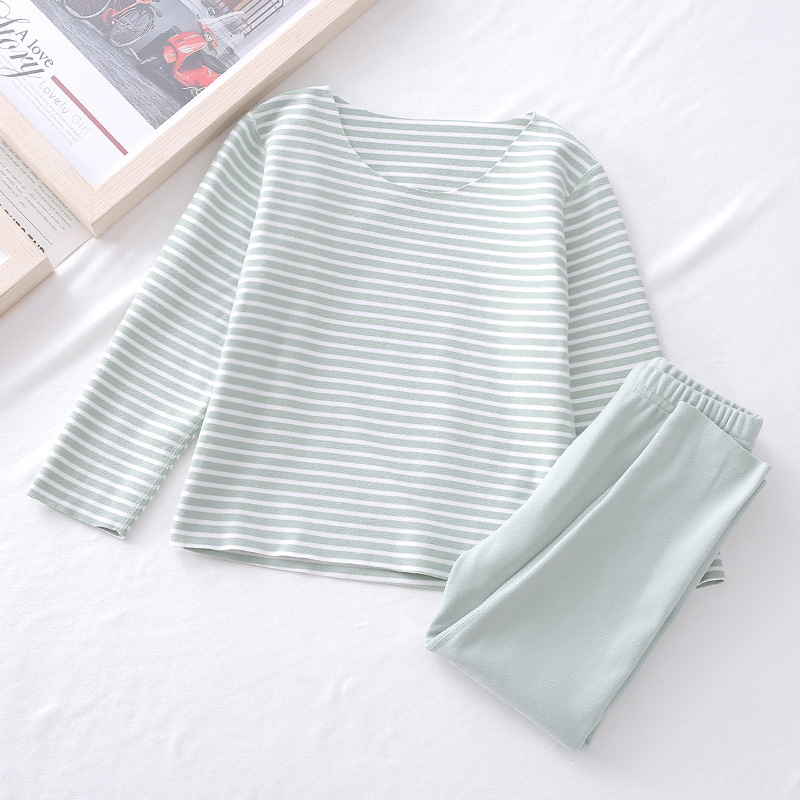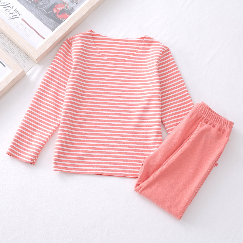 어린이 벨벳 스트라이프 따뜻한 편안한 속옷 라운드 넥 원활한 세트 가을과 겨울 칼라없는 가을 옷과 바지와 소년 소녀 용