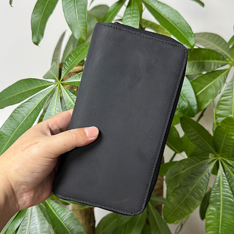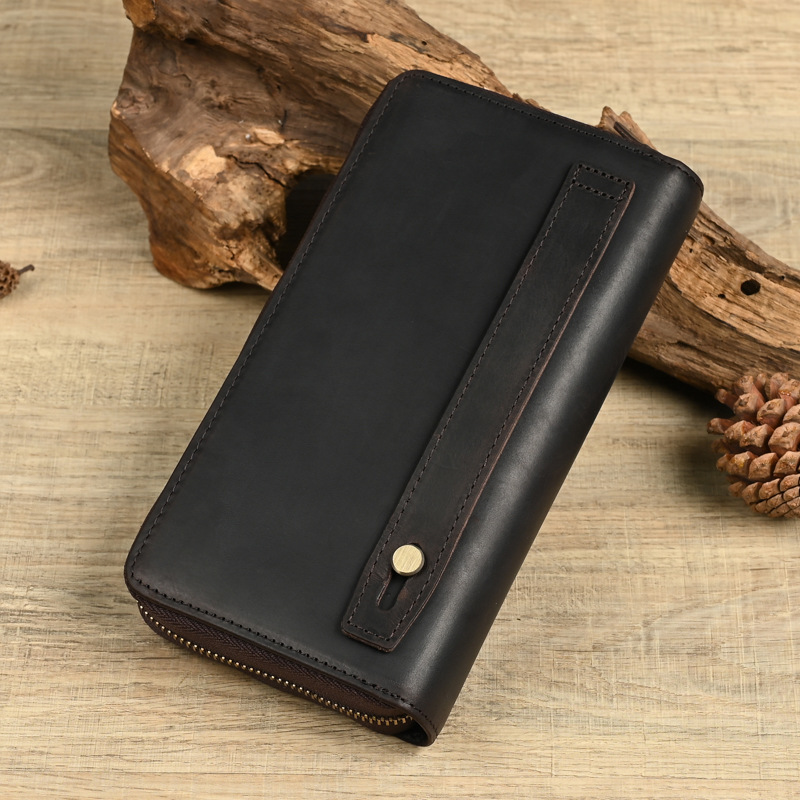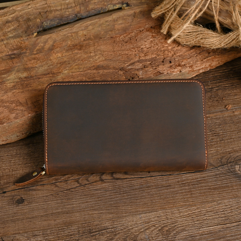 TikTok 폭발 업그레이드 및 용량 증가 정품 가죽 남성용 클러치 백 미친 말 가죽 담배 휴대 전화 올인원 클러치 지갑