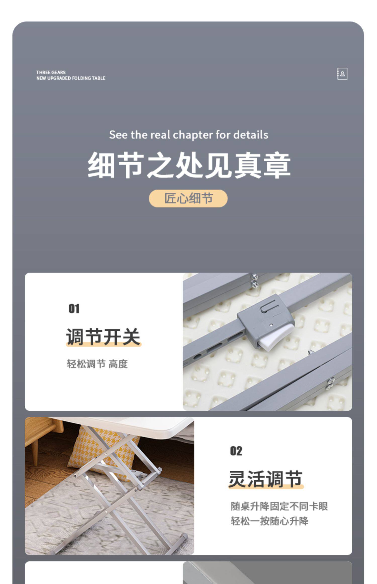 • ☆ ★ 【조립 불필요 접이식 테이블, 4단계 높이 조절】- 블루 ☆ ★