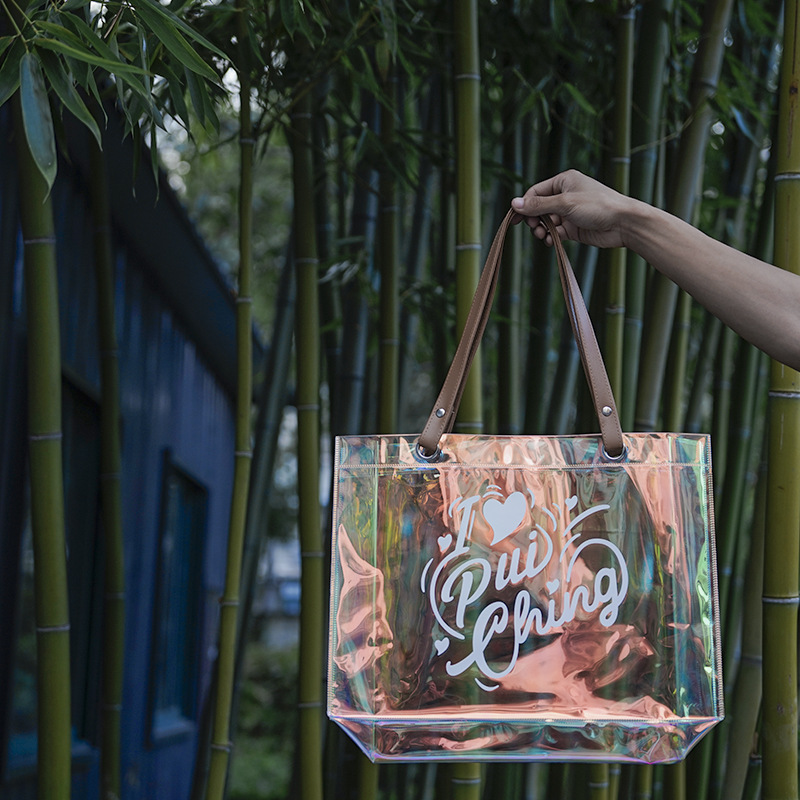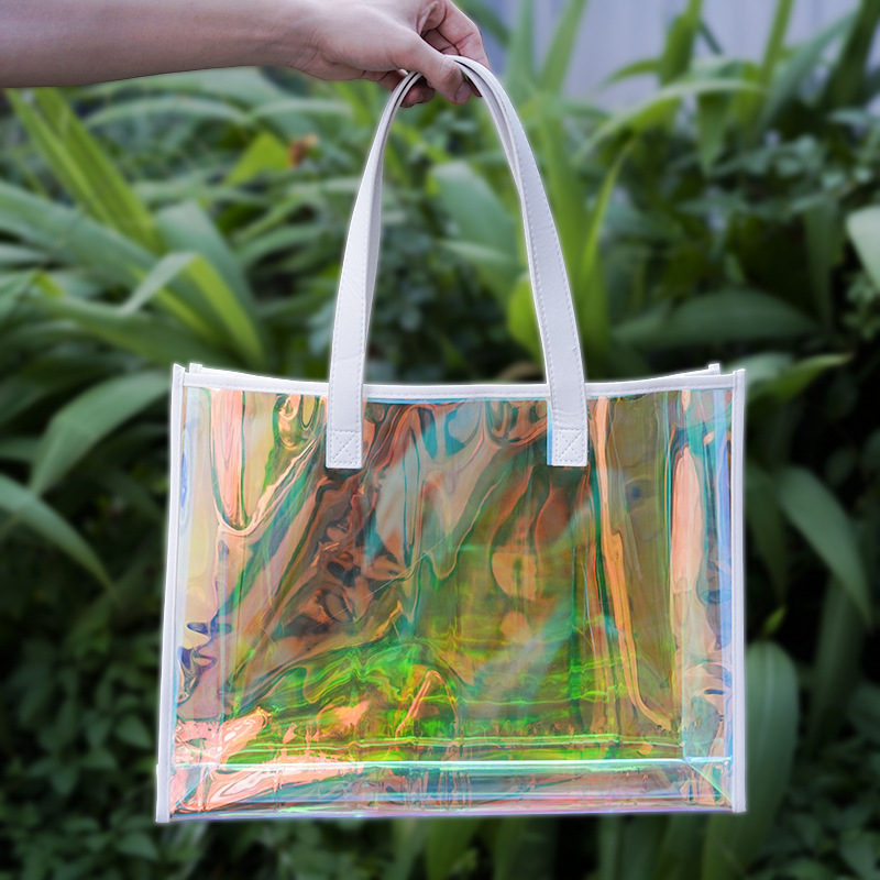 다채로운 재고 레이저 가방 pvc 투명 핸드백 손 선물 가방 제형 패션 어깨 젤리 화장품 가방