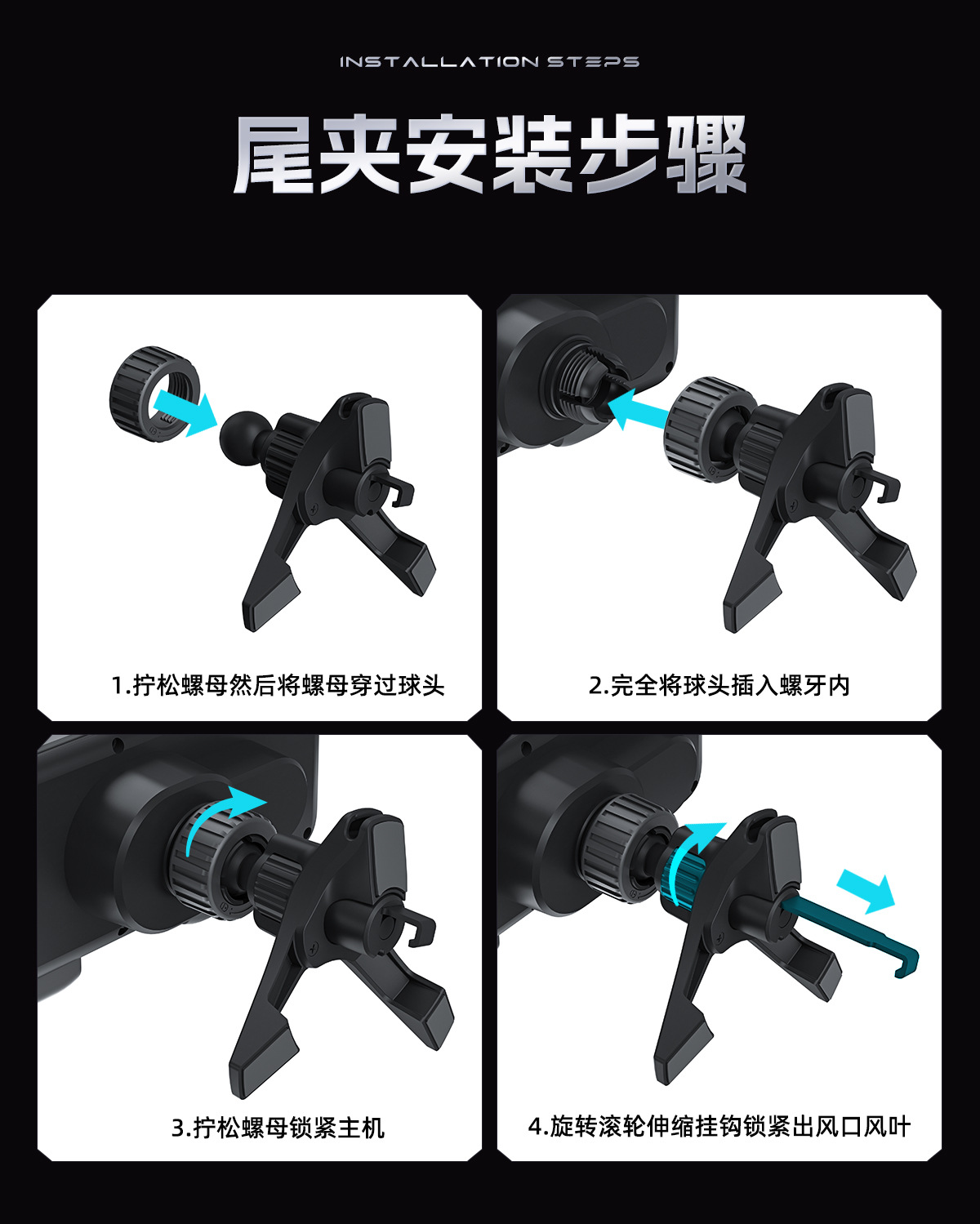 • 확장 후크 블랙 (범용 수평 및 수직 원형 경사 공기 배출구)