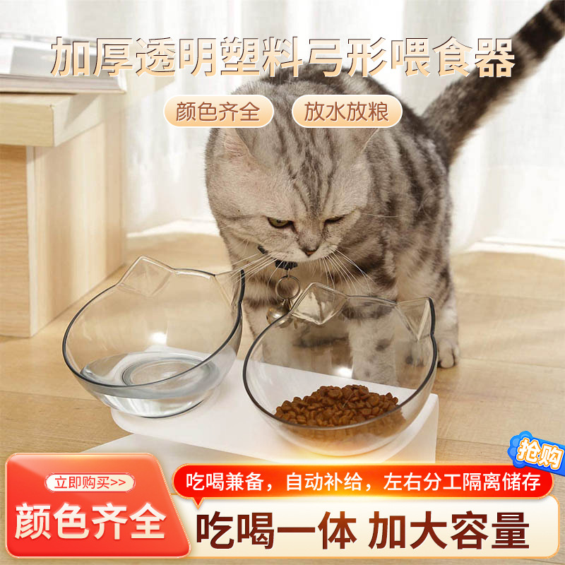 두꺼운 투명 플라스틱 아치형 먹이통, 경사진 입구가 있는 이중 그릇, 고양이 목 보호 그릇, 강아지 그릇, 식기 용품 도매스토어 가기