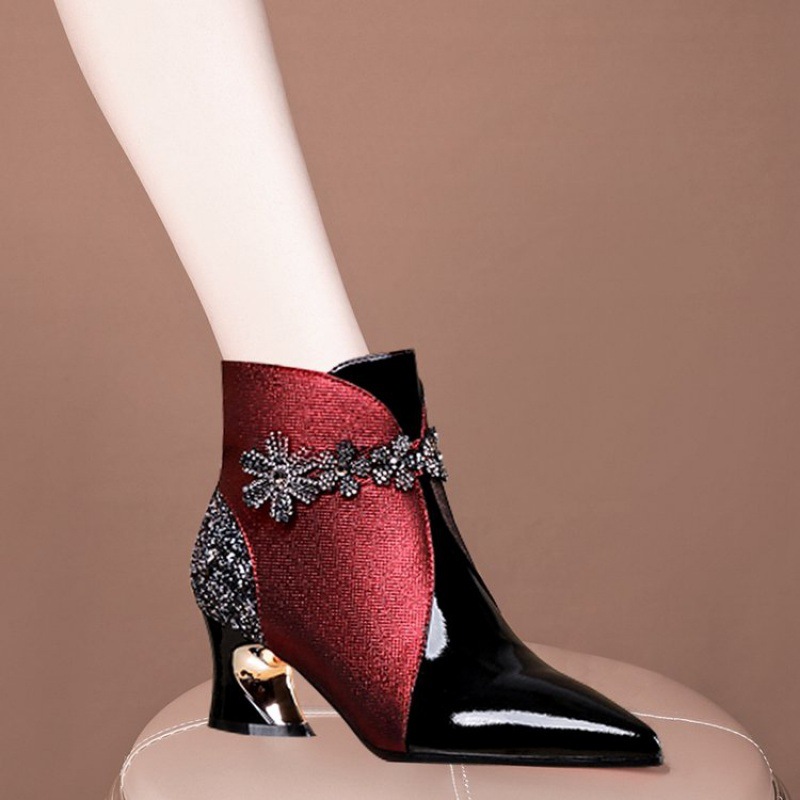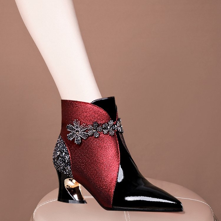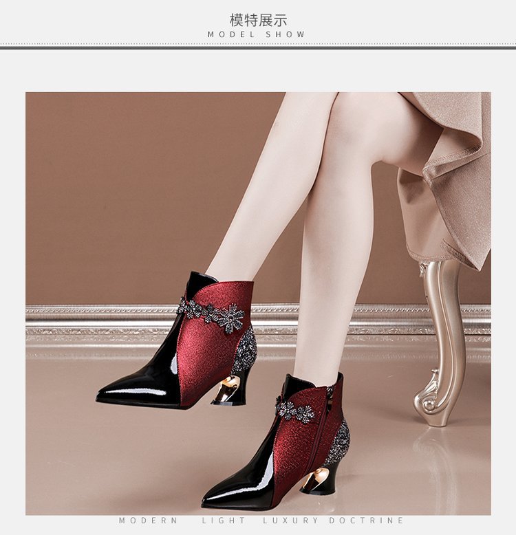 여성 신발 2022 새로운 짧은 부츠 여성 가을과 겨울 모든 매치 뾰족한 싱글 레이어 부츠 어머니 가죽 부츠 두꺼운 힐 컬러 매칭 마틴 부츠