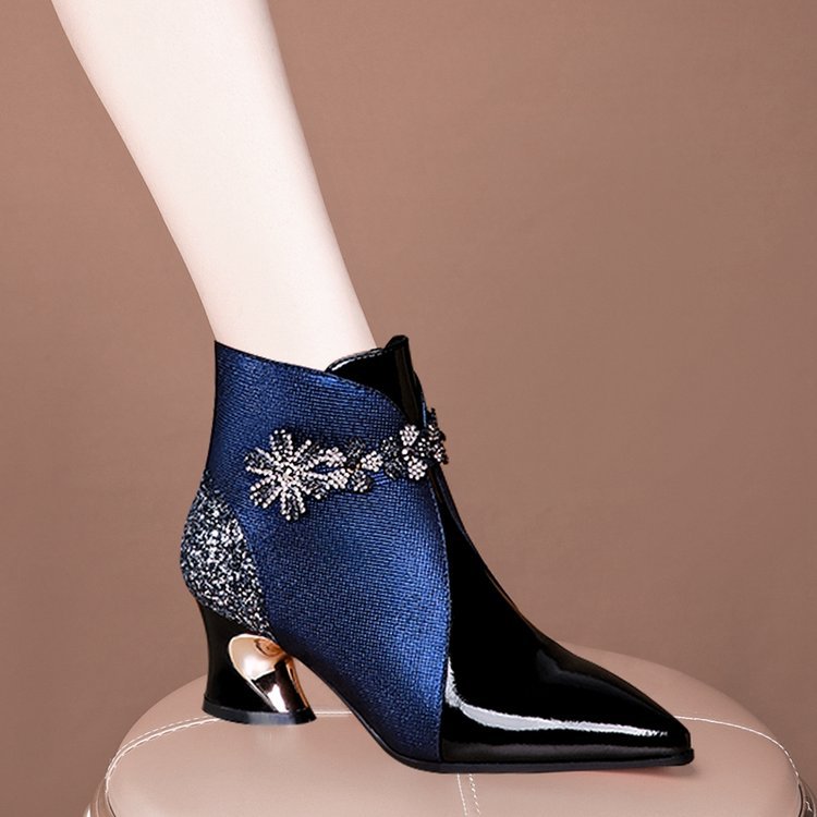 여성 신발 2022 새로운 짧은 부츠 여성 가을과 겨울 모든 매치 뾰족한 싱글 레이어 부츠 어머니 가죽 부츠 두꺼운 힐 컬러 매칭 마틴 부츠스토어 가기